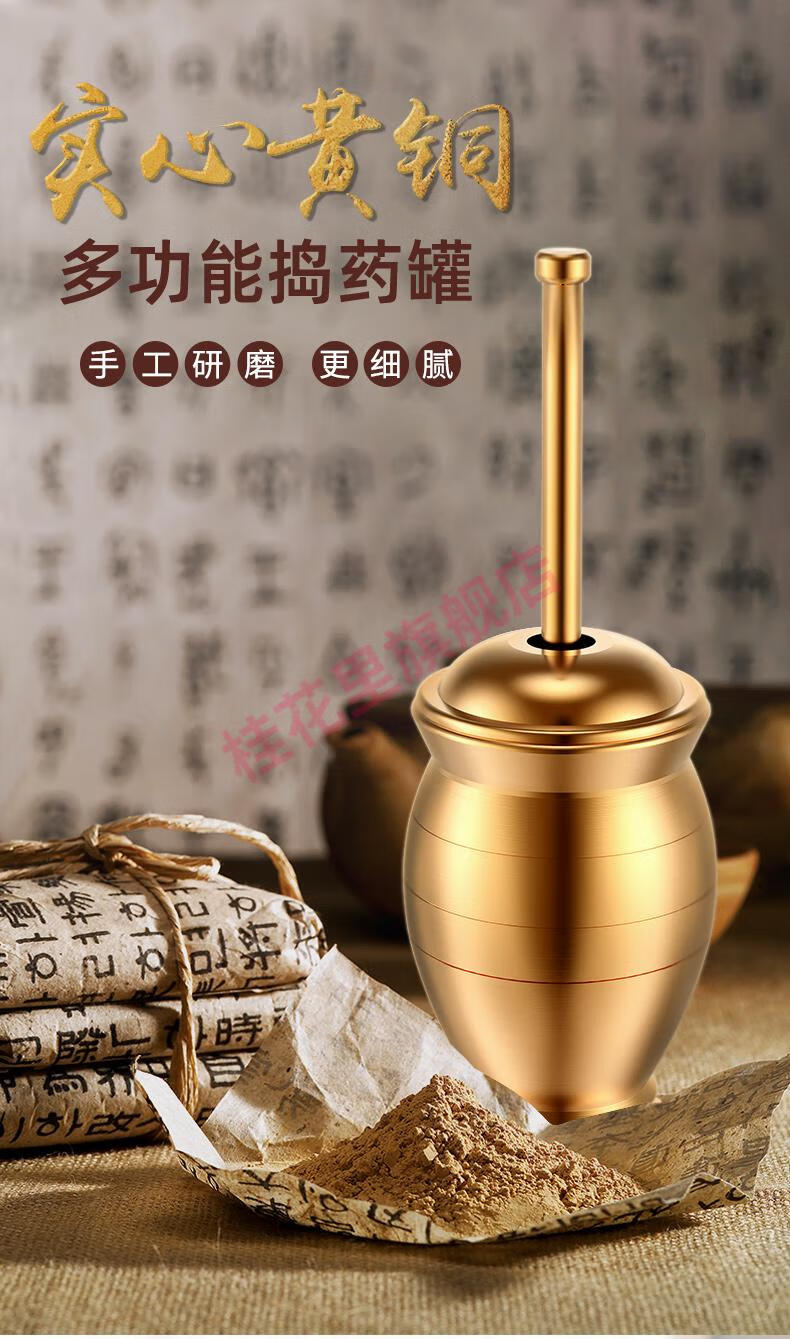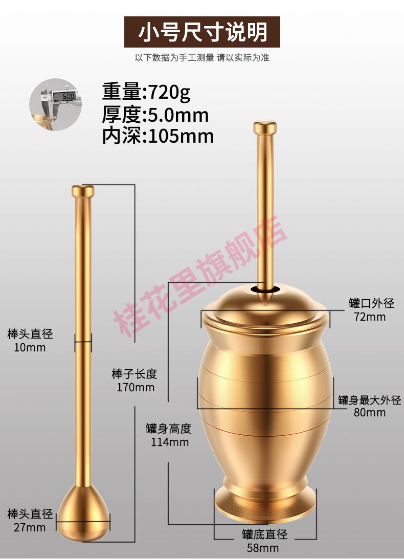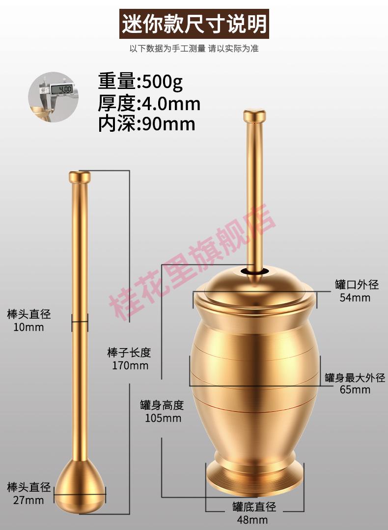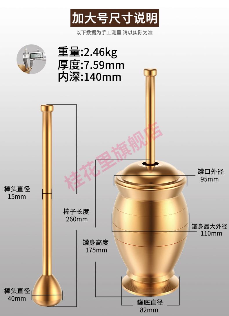 Du Zhunyu pure brass medicine jar pestle household brass cup old-fashioned traditional Chinese medicine mortar stone mortar medicine cup mash garlic grinder thickened upgrade large