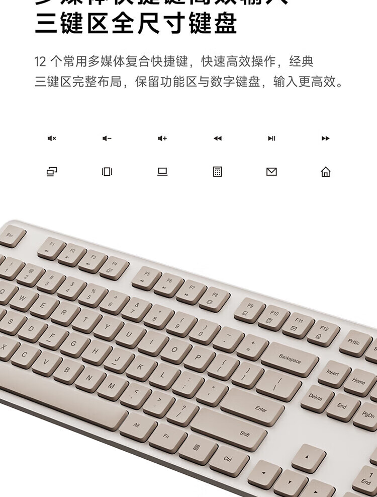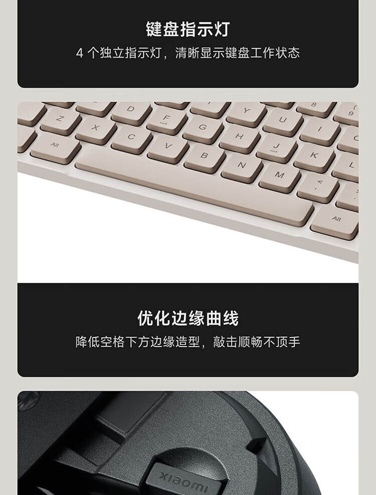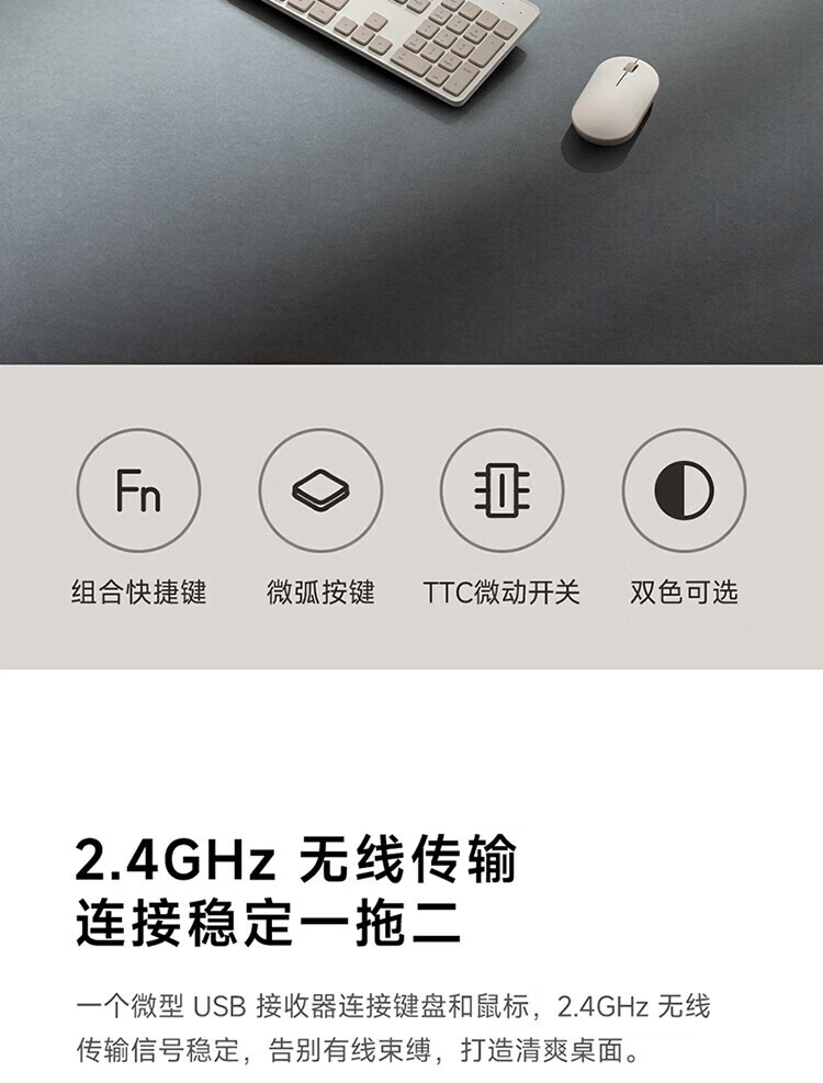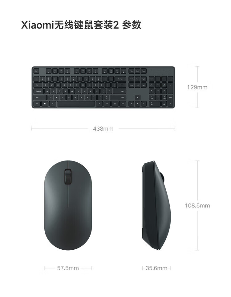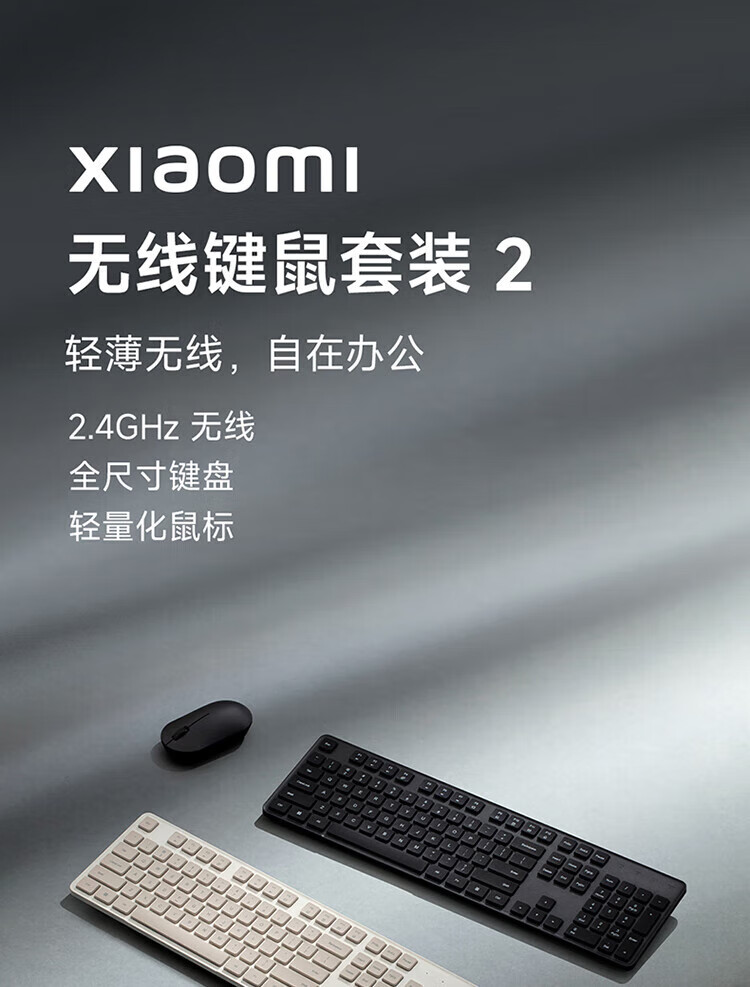 Xiaomi (MI) Wireless Keyboard and Mouse Set 2 Thin and Portable Full-size 104 Keyboard and Mouse Set 2.4G Wireless Transmission Computer Laptop Keyboard and Mouse Office Set Xiaomi Wireless Keyboard and Mouse Set 2 Matte Matte