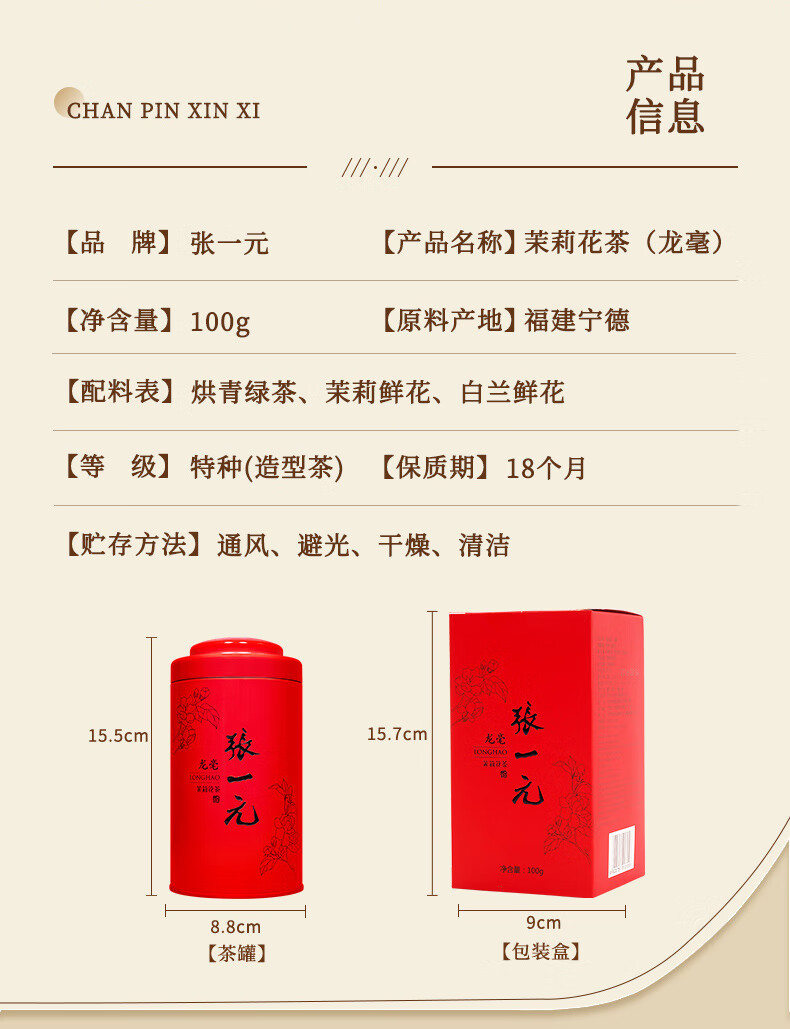Zhang Yiyuan Tea Jasmine Tea Longhao New Year Tea Mingqian Tea Strong Fragrance Companion Tea Gift Special 100g Can