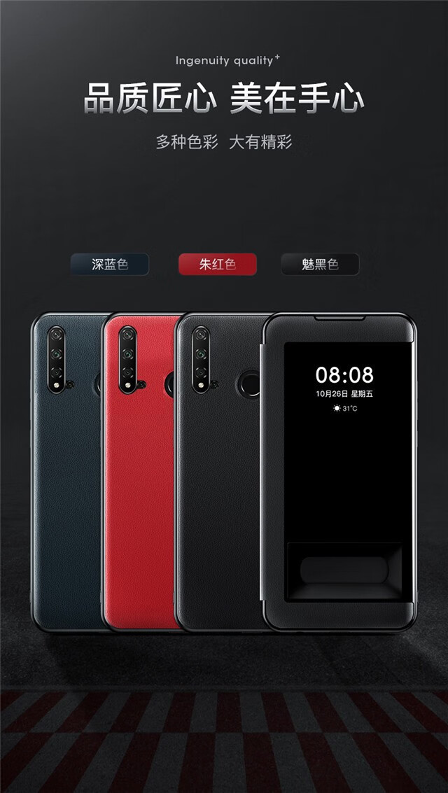 RNX Huawei nova5/Pro mobile phone case clamshell leather case Nova5iPro all-inclusive silicone 5T soft shell protective case anti-fall nova5z Huawei Nova5/5Pro charming black window leather case + tempered film