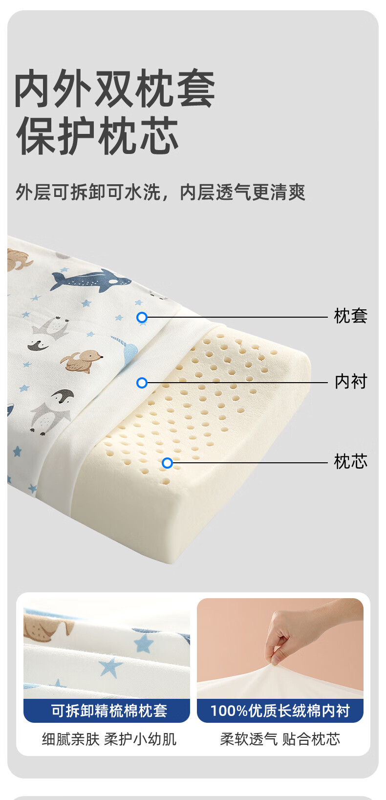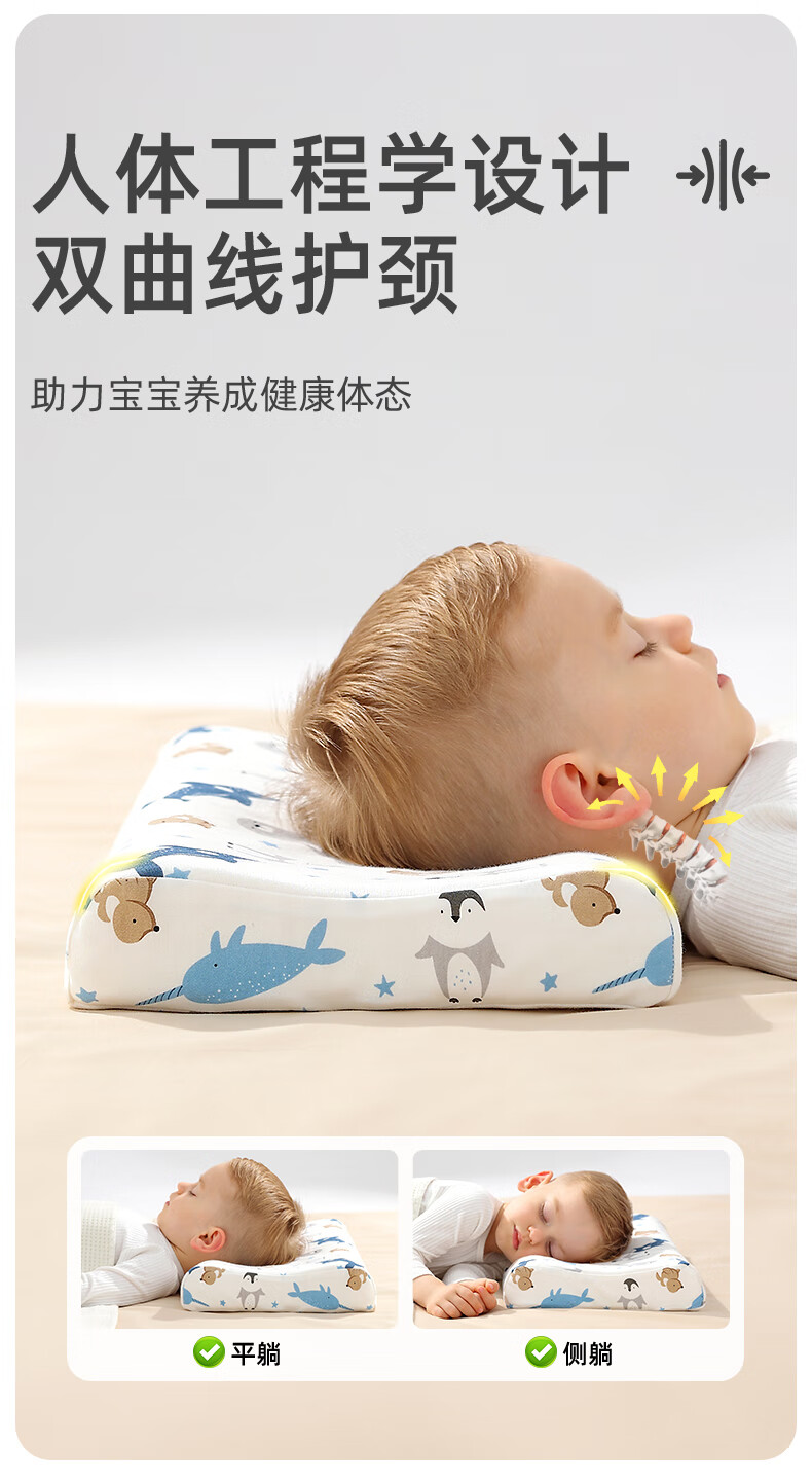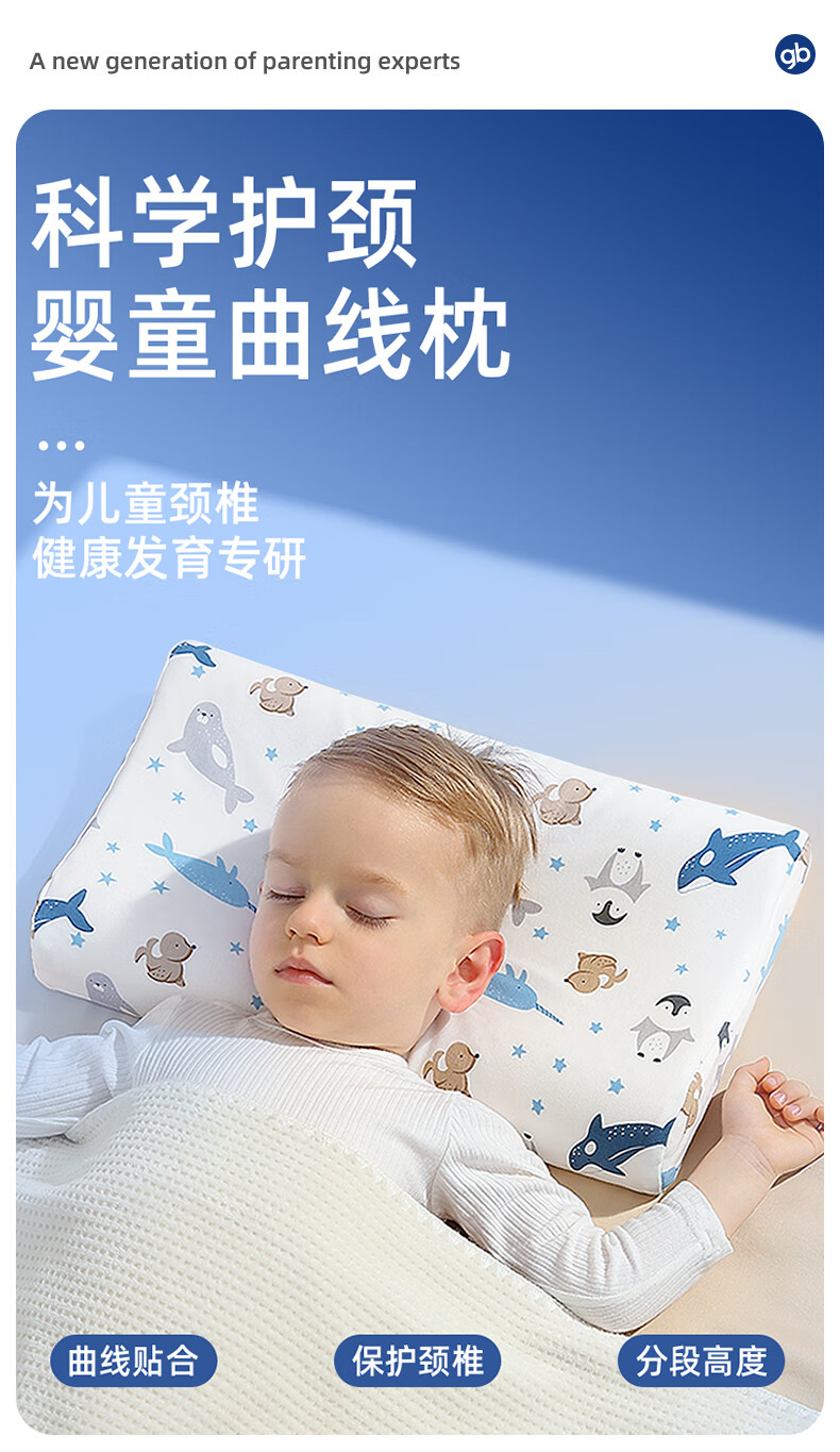 Goodbaby (gb) Children's Latex Pillow Baby Shaping Pillow Baby 0-3-6-16 Years Old Anti-mite Antibacterial All-season Toddler Pillow 0-3 Years Old - Star Cruise - Blue