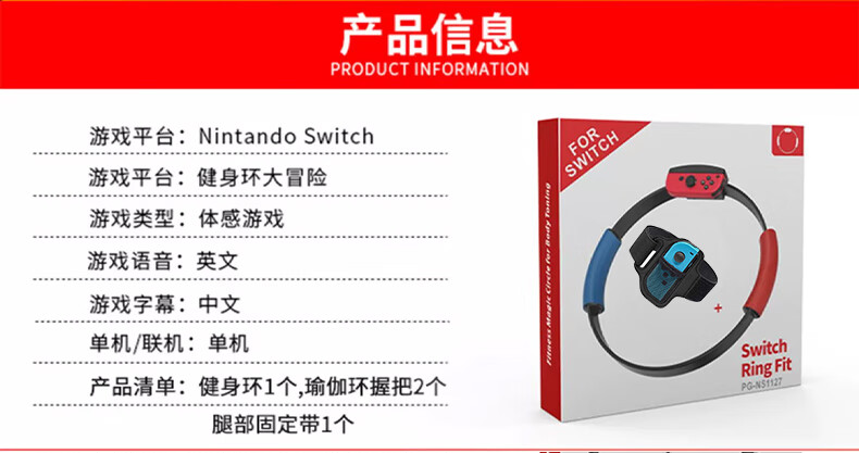 Aolion Australian Lion Switch National Line Fitness Ring Adventure Somatosensory Game Pilates Ring NS Children's Adult Sports Ring Exercise Japanese and Hong Kong Version Unisex Boxed Fitness Ring - Game Card Not Included