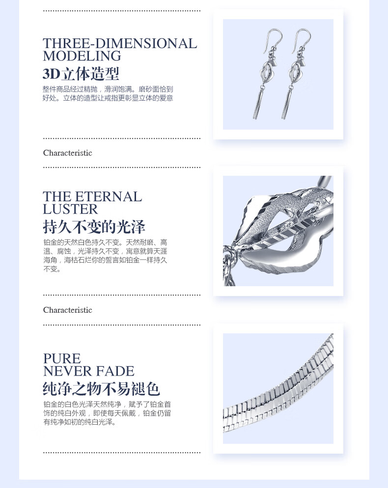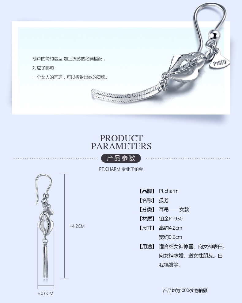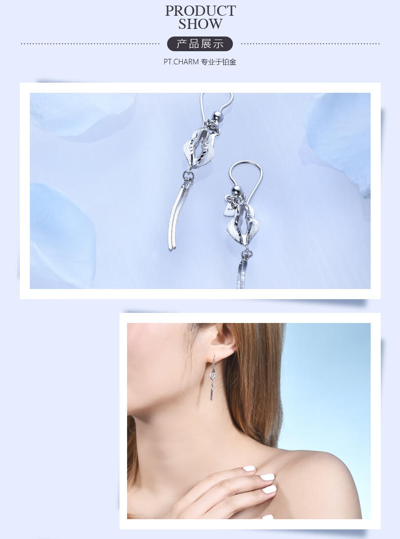 Pt.Charm Platinum Earrings pt950 Earrings Platinum Women's Personalized Long Tassel Earrings Confession to Girlfriend Ready in Stock 3.20-3.30g Pair