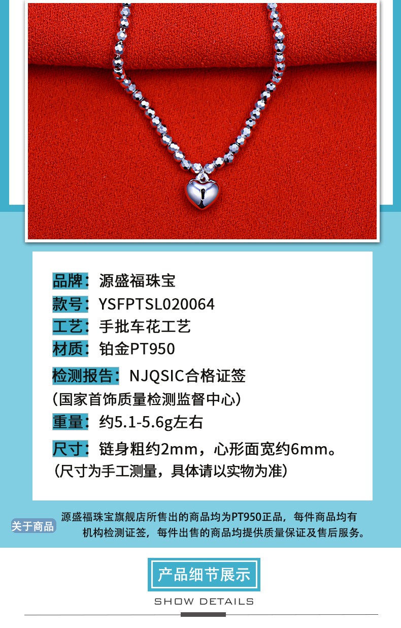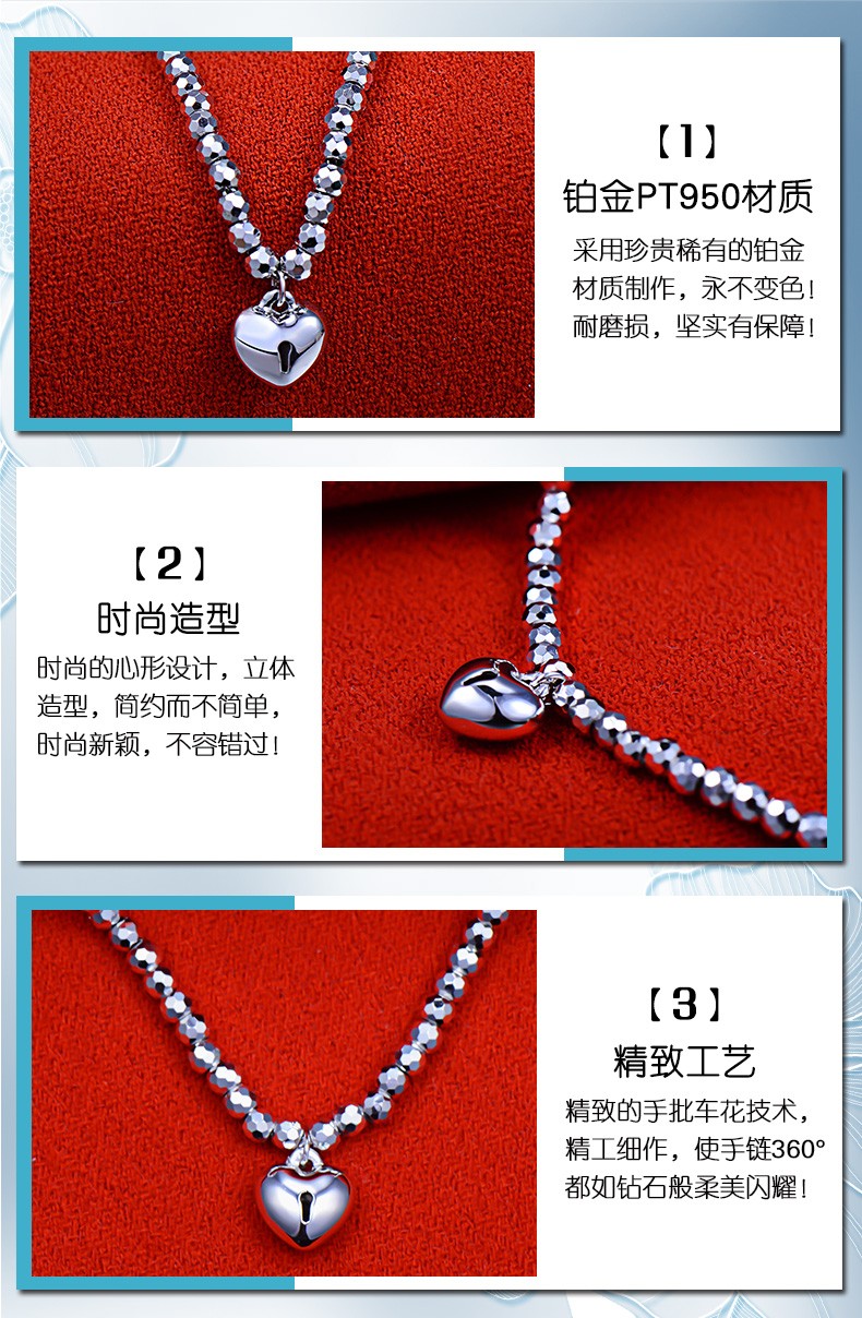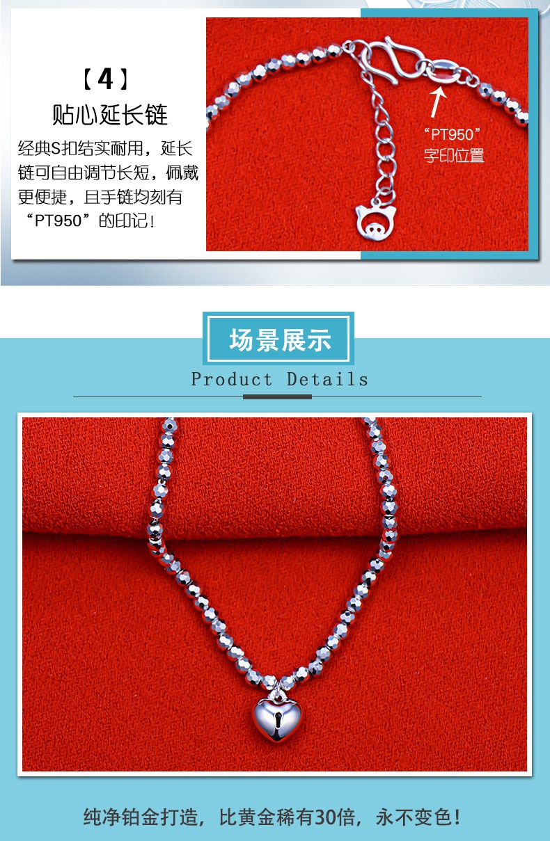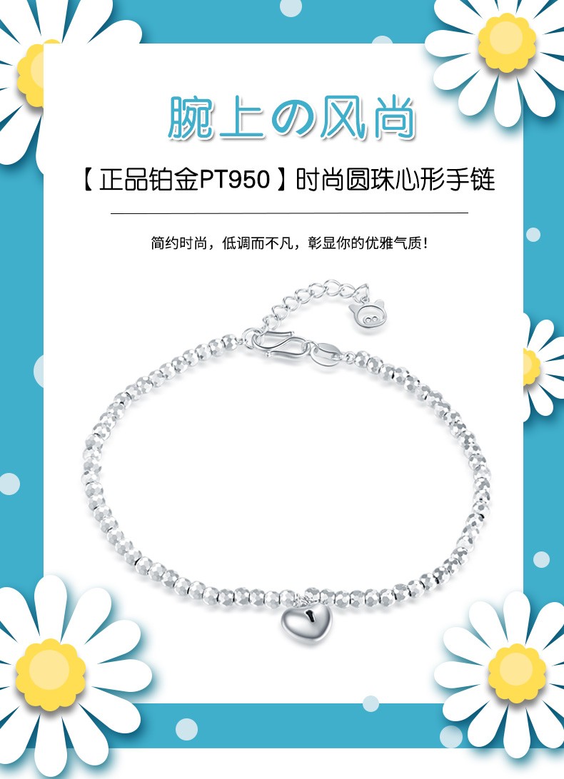 Yuan Shengfu's new PT950 exquisite heart-shaped car flower fashion platinum bracelet women's platinum hand jewelry promotion 5.60 grams length 16-18cm adjustable