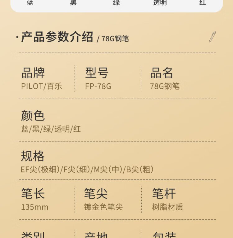 PILOT Hot Products 78G Fountain Pen Primary School Students 3-6th Grade Calligraphy Pen Preschool Gift Adult High-End Signature Pen Stationery Gift Box Retro Series Transparent F Tip