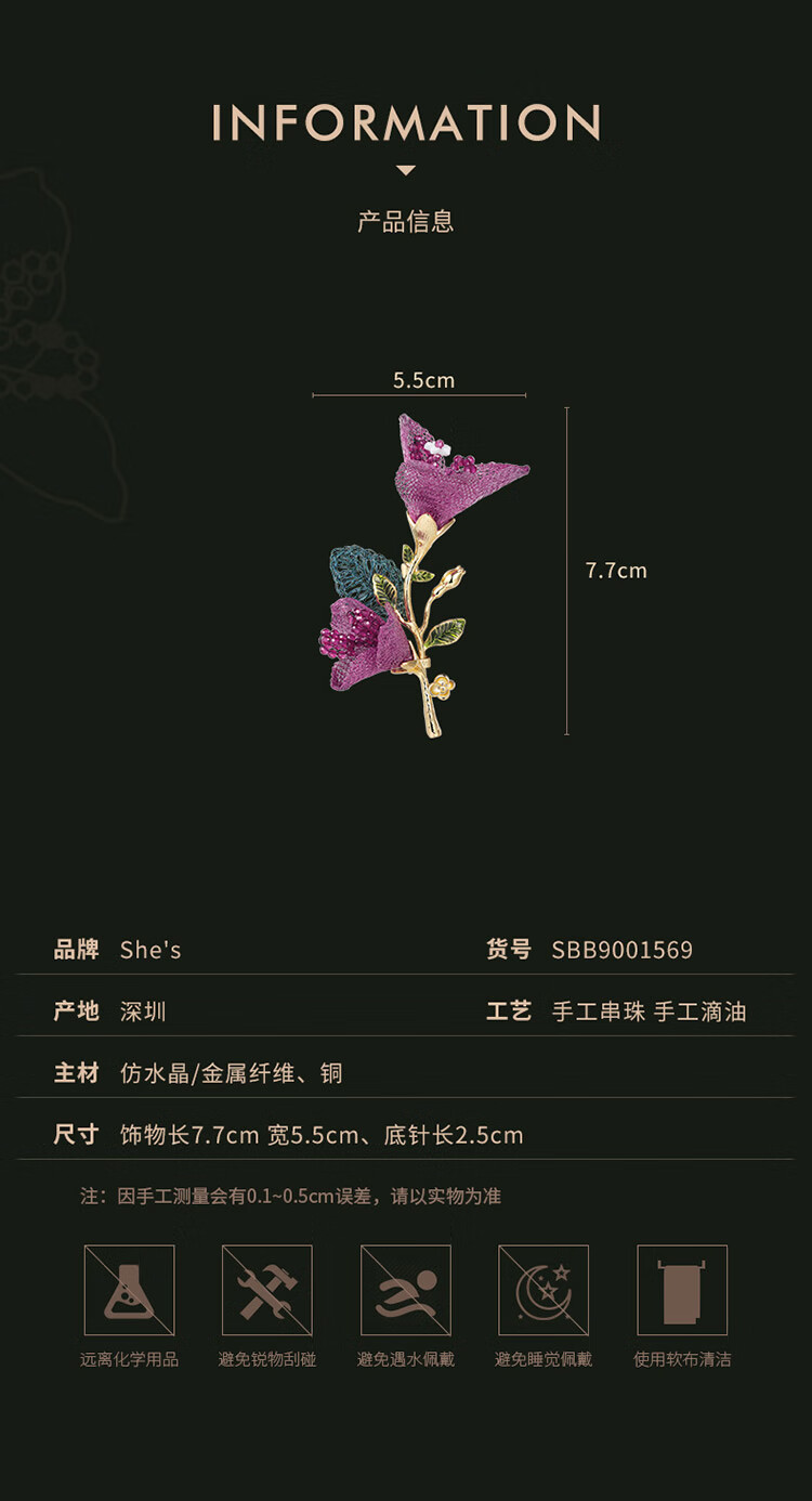 She s Qianzi Shenzhen souvenir bougainvillea flower brooch high-end corsage silk scarf buckle pin gift box birthday gift for women single flower SBB9001570A3
