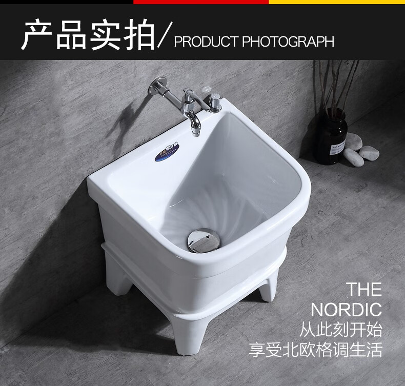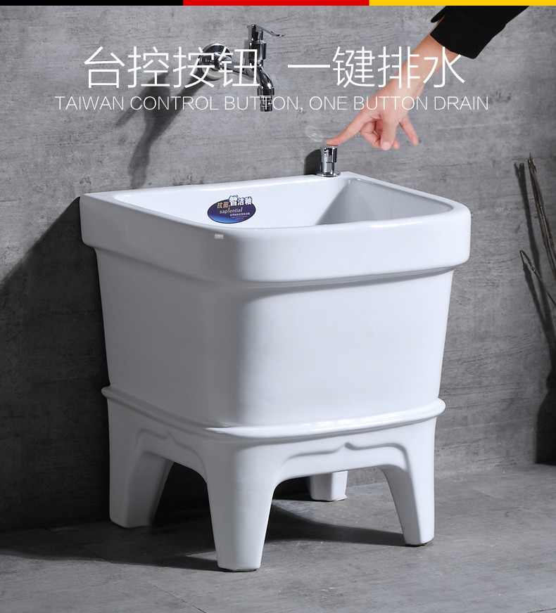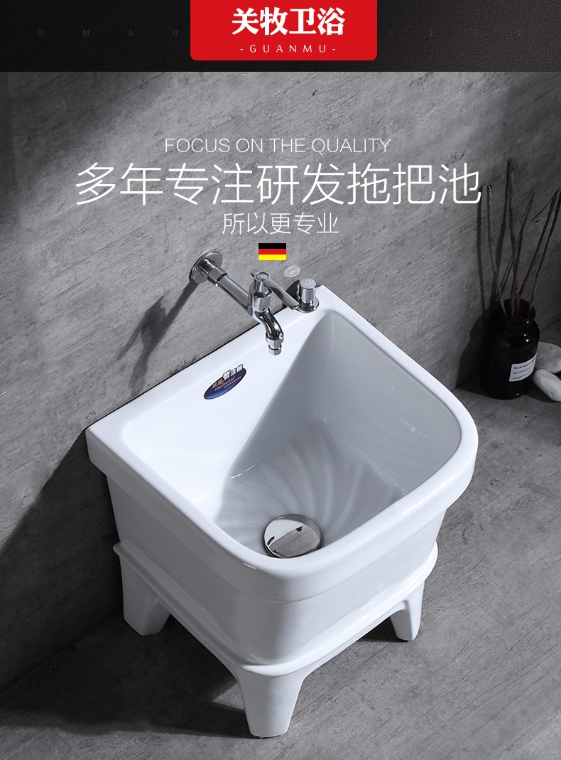 GuanMu mop pool household balcony bathroom floor basin mop pool rectangular mop pool floor-standing small trough pool Zhijie glaze 40cm manual drain