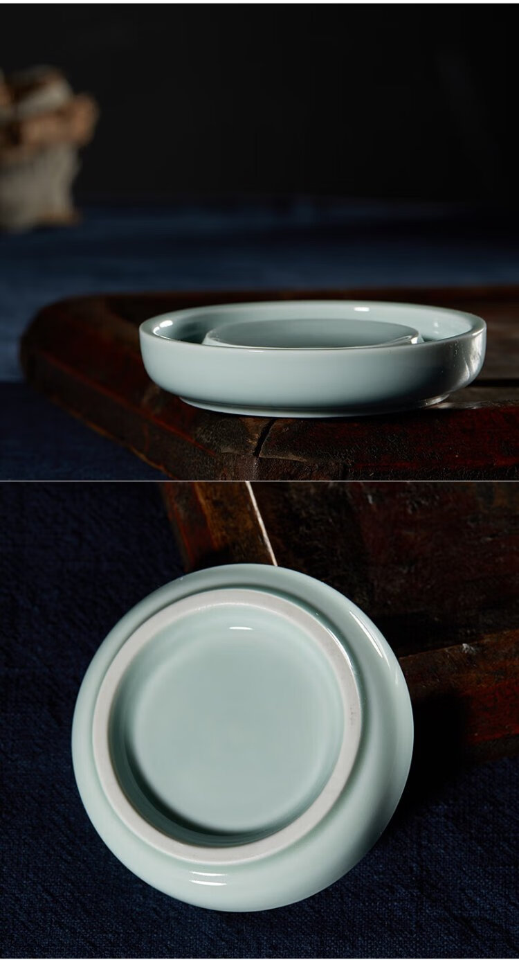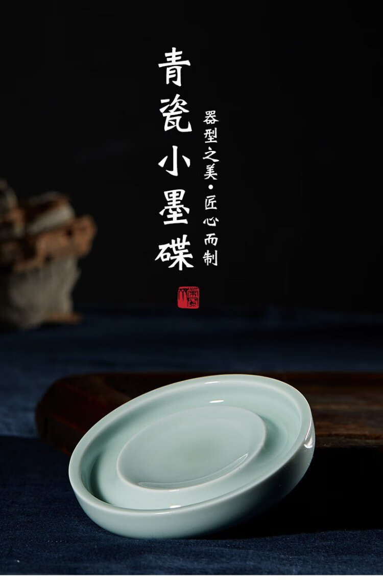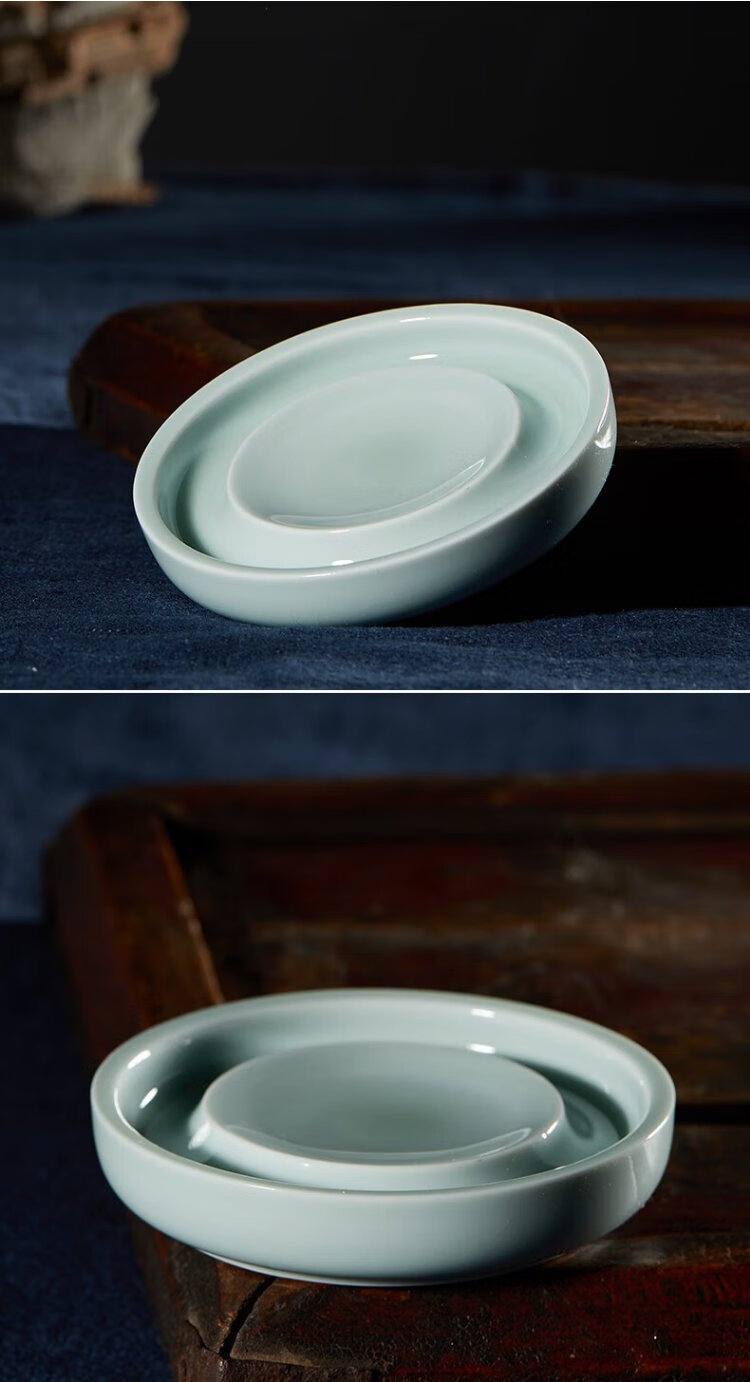 Самая низкая цена во всей сети Rongbaozhai Чернильная тарелка «Четыре сокровища исследования» Держатель для французской кисти Держатель для ручки Чернильный камень Керамический держатель для палитры Селадон Маленькая чернильная пластина (Гороховый синий)