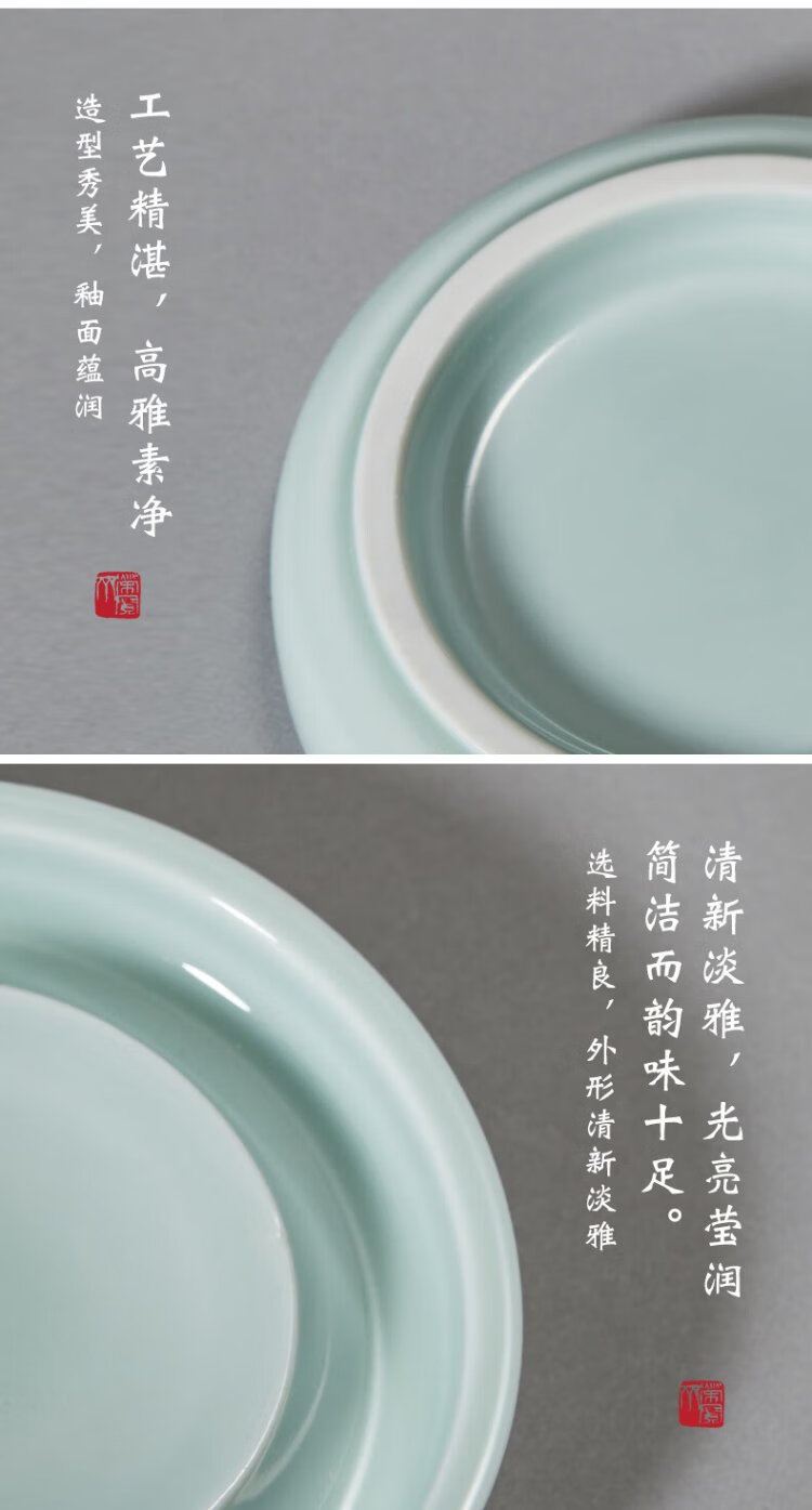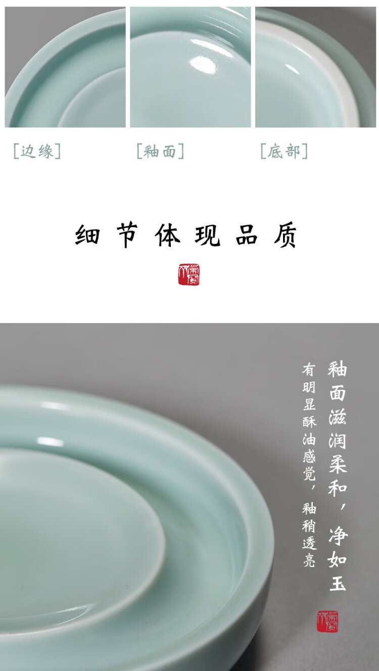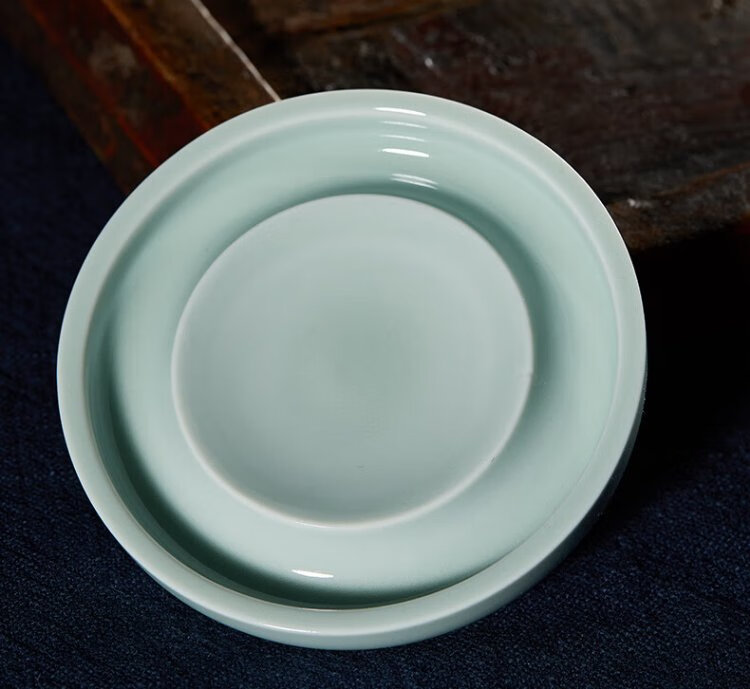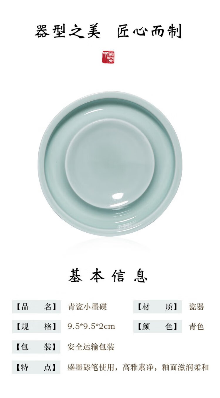 Самая низкая цена во всей сети Rongbaozhai Чернильная тарелка «Четыре сокровища исследования» Держатель для французской кисти Держатель для ручки Чернильный камень Керамический держатель для палитры Селадон Маленькая чернильная пластина (Гороховый синий)