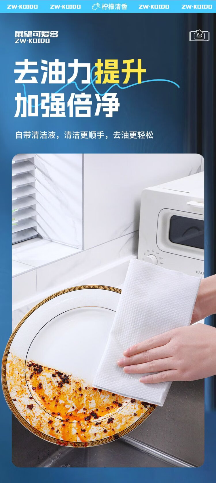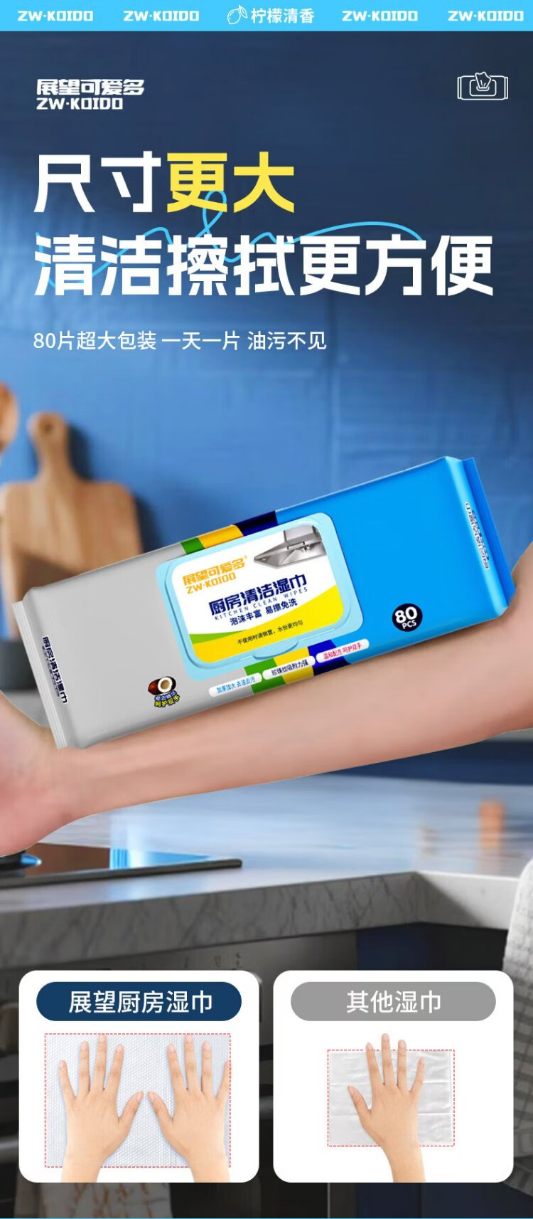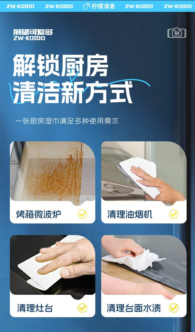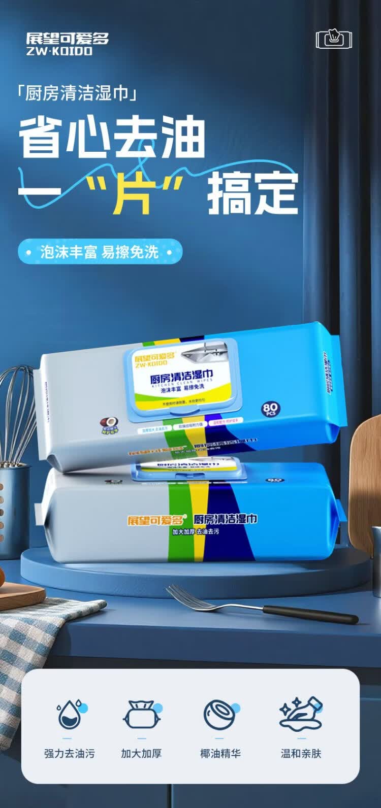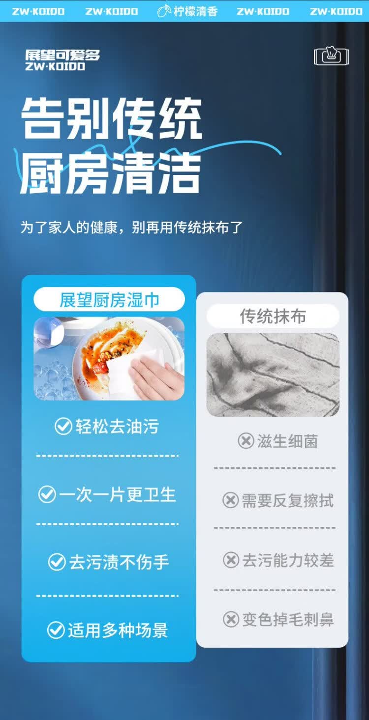 Универсальные кухонные салфетки Zhan Wang Kaitai Специальные чистящие и мощные масляно-обезжиривающие тряпки для вытирания масляного дыма, влажные салфетки большего размера и утолщения, 1 слой, 80 ячеек*5 упаковок, отличный выкуп