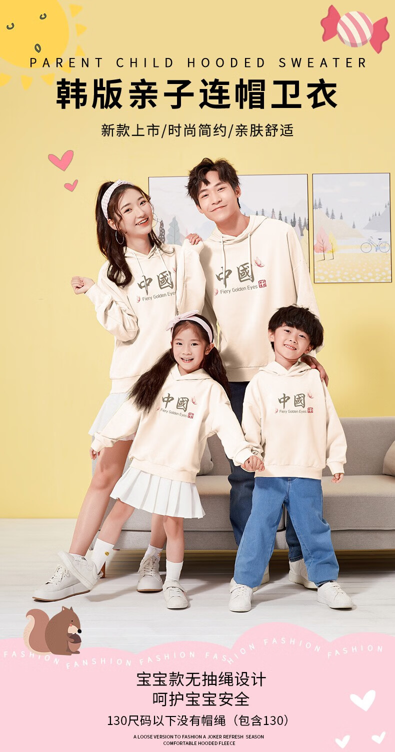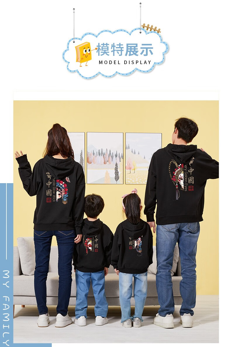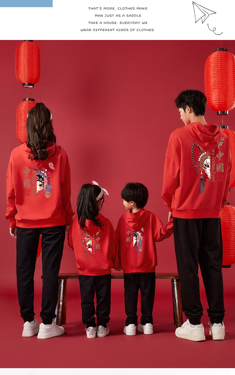Lemonde 2026 Autumn and Winter Chinese Style Peking Opera Parent-child Clothes Family Hooded Sweatshirts New Year's Eve Clothes for a Family of Three or Four Red (Spring and Autumn without velvet) 180 Men's 2XL
