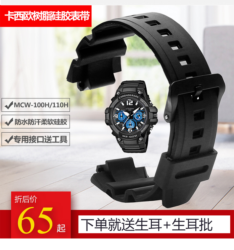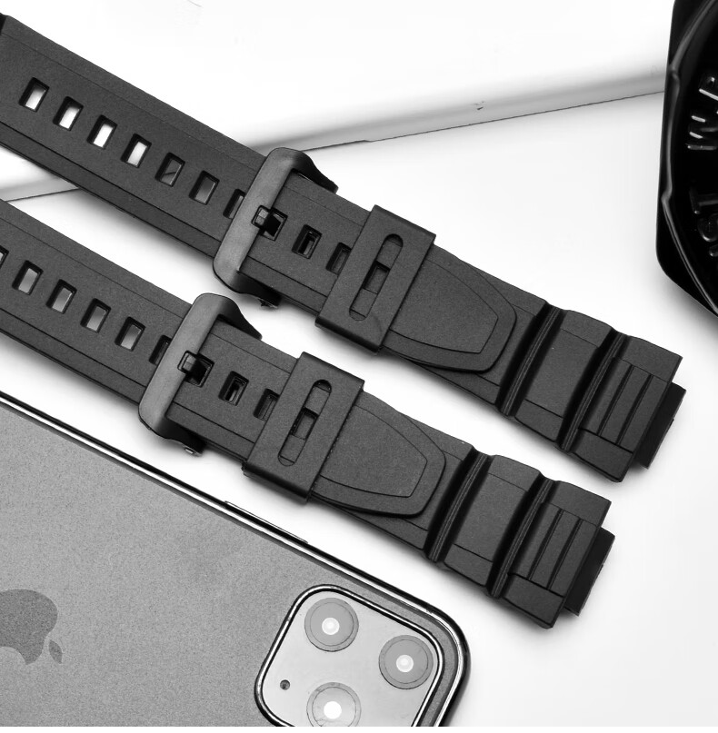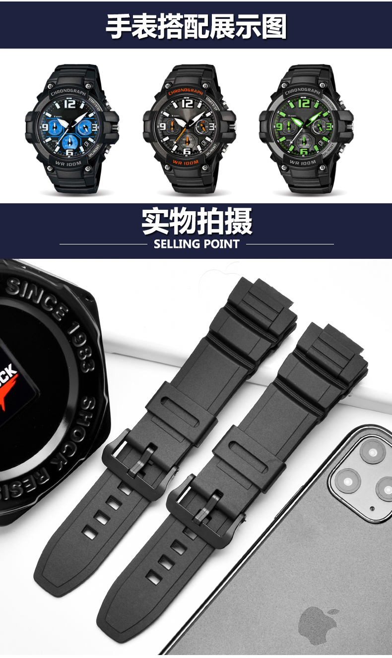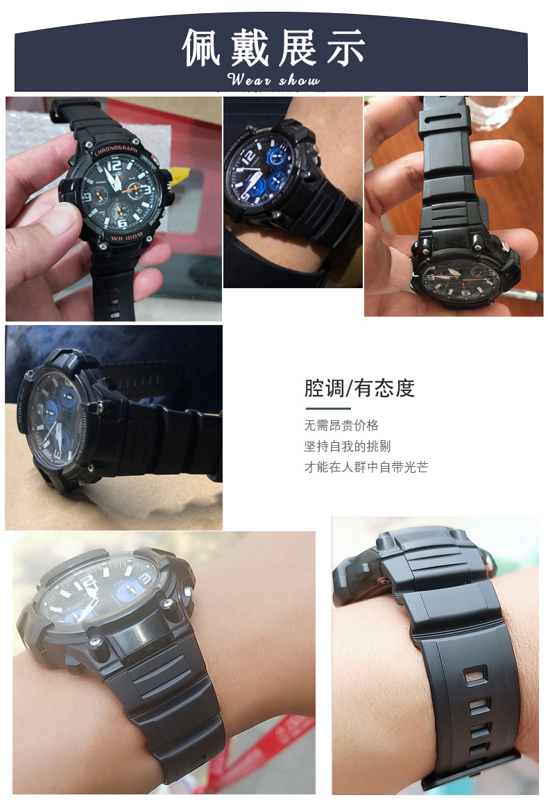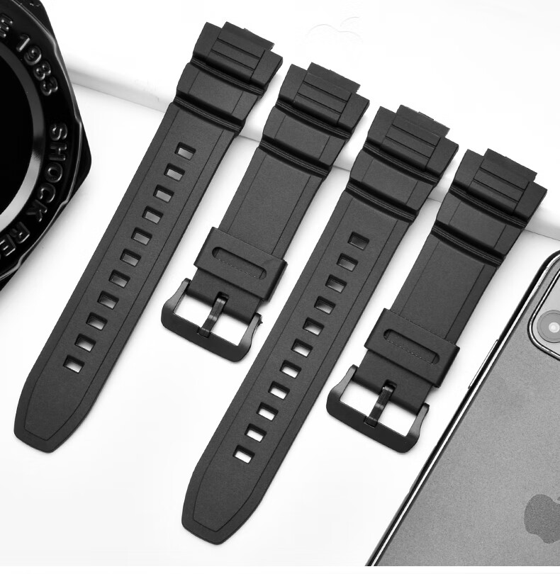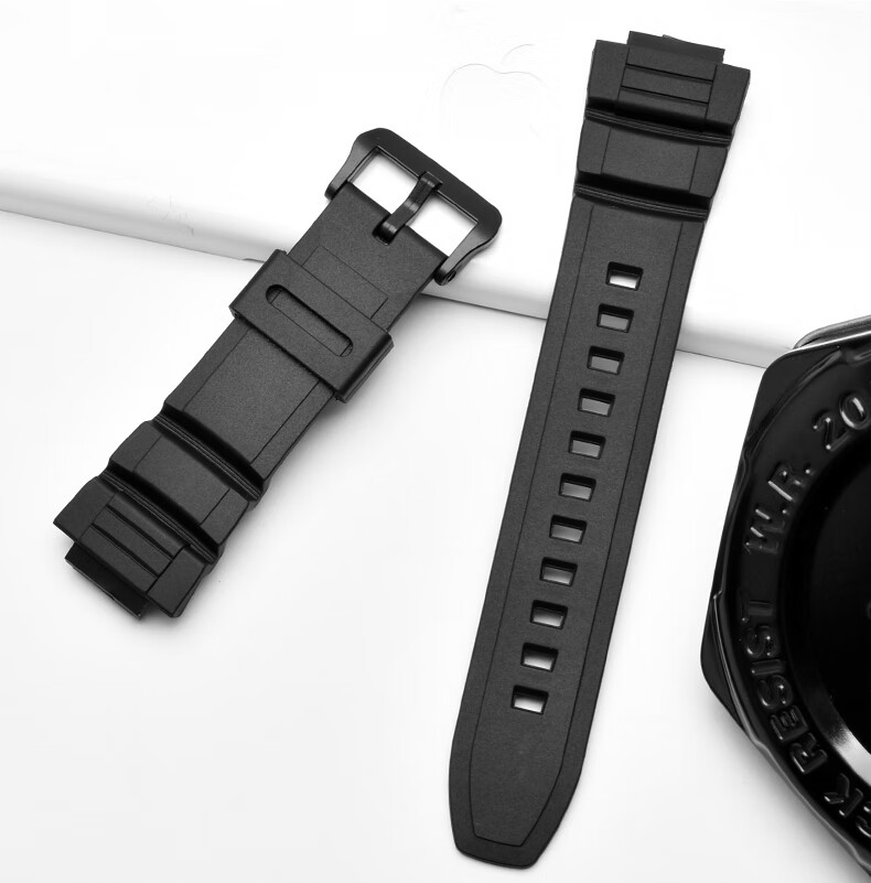 Taige Shiya adapts to Casio watch strap MCW-100H/110H/W-S220/HDD-S100 black resin watch strap convex black black buckle 16mm