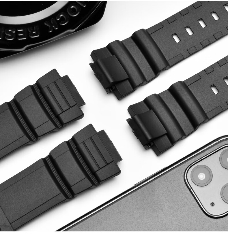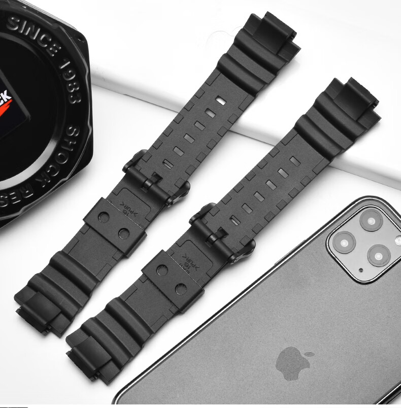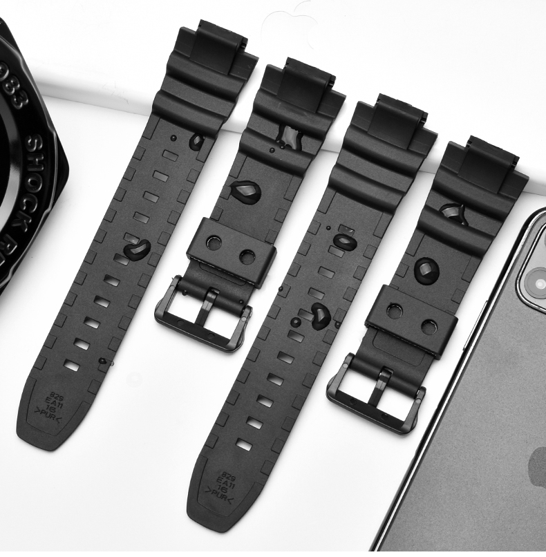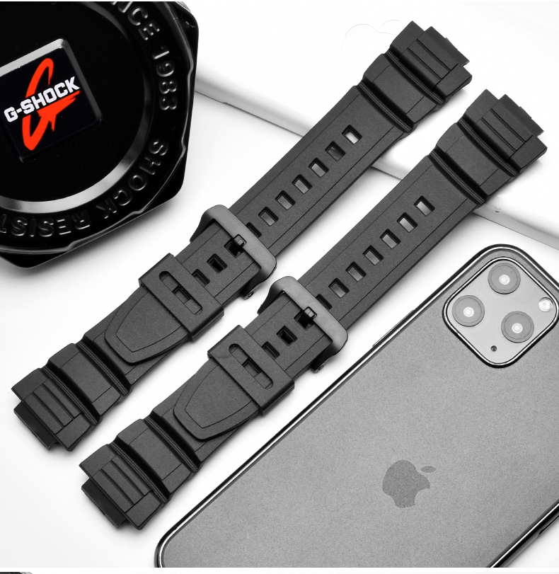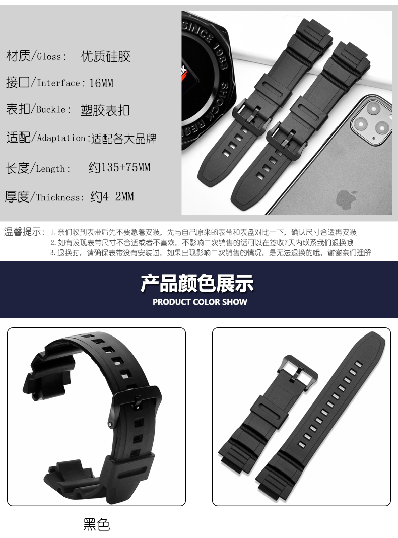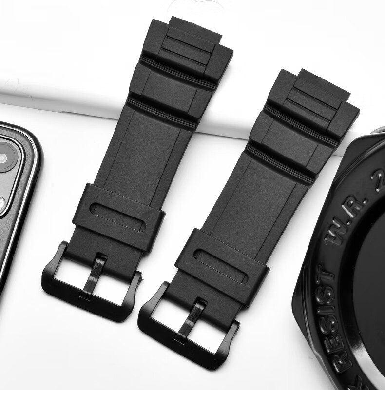 Taige Shiya adapts to Casio watch strap MCW-100H/110H/W-S220/HDD-S100 black resin watch strap convex black black buckle 16mm