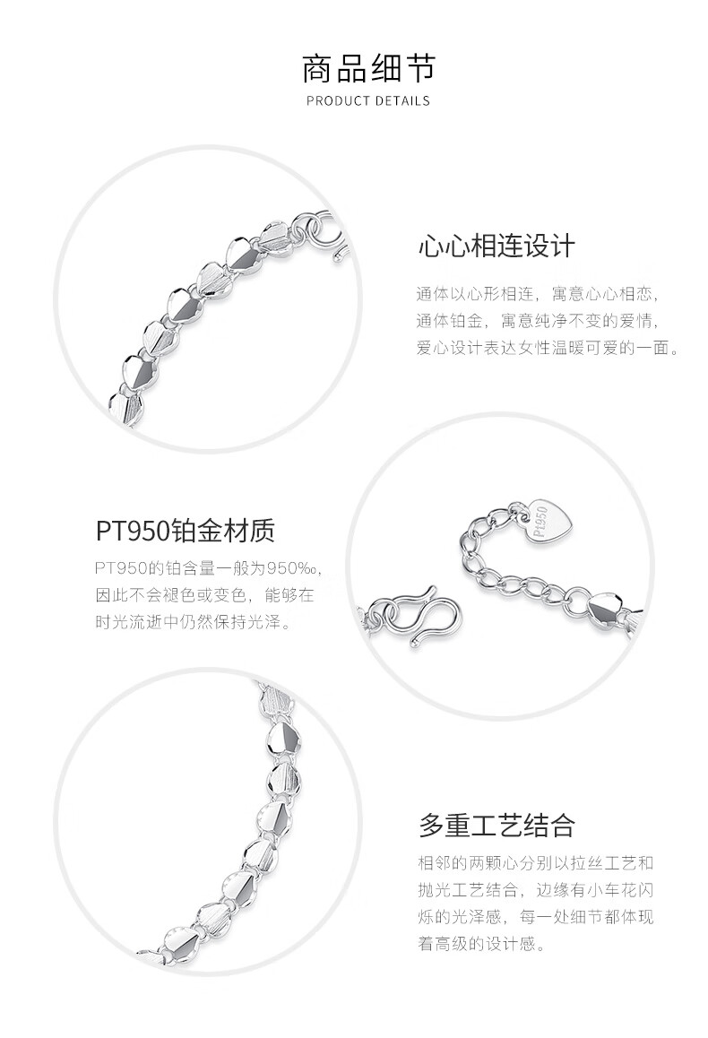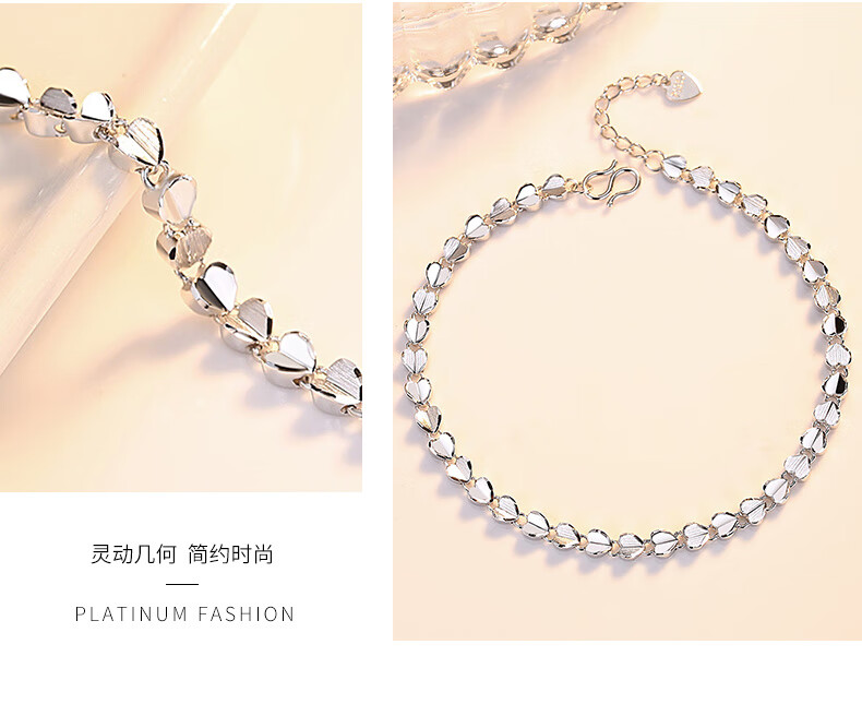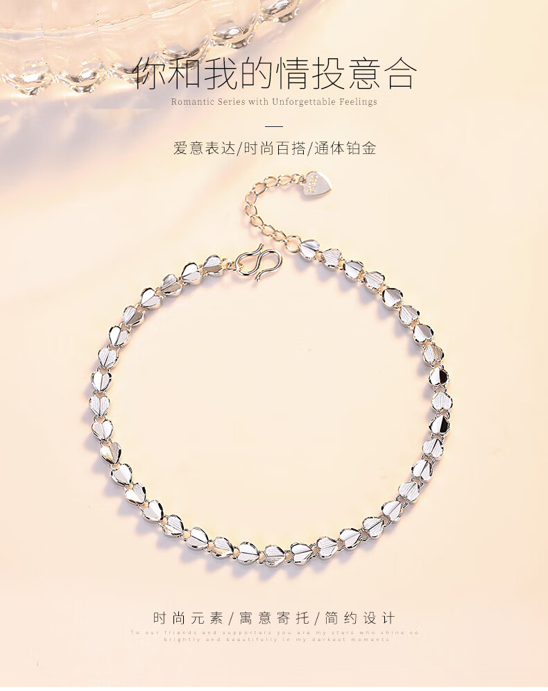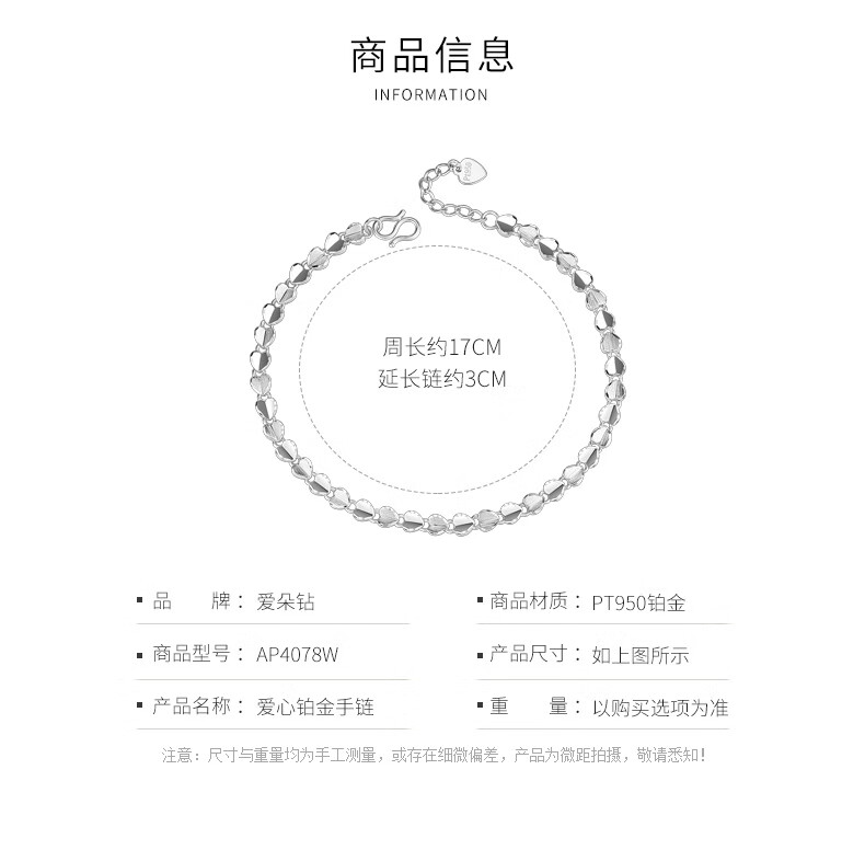 Aido Diamond platinum heart-shaped bracelet for women pt950 platinum love bracelet gift for wife, weight 9.1-9.3 grams, length 16+3cm
