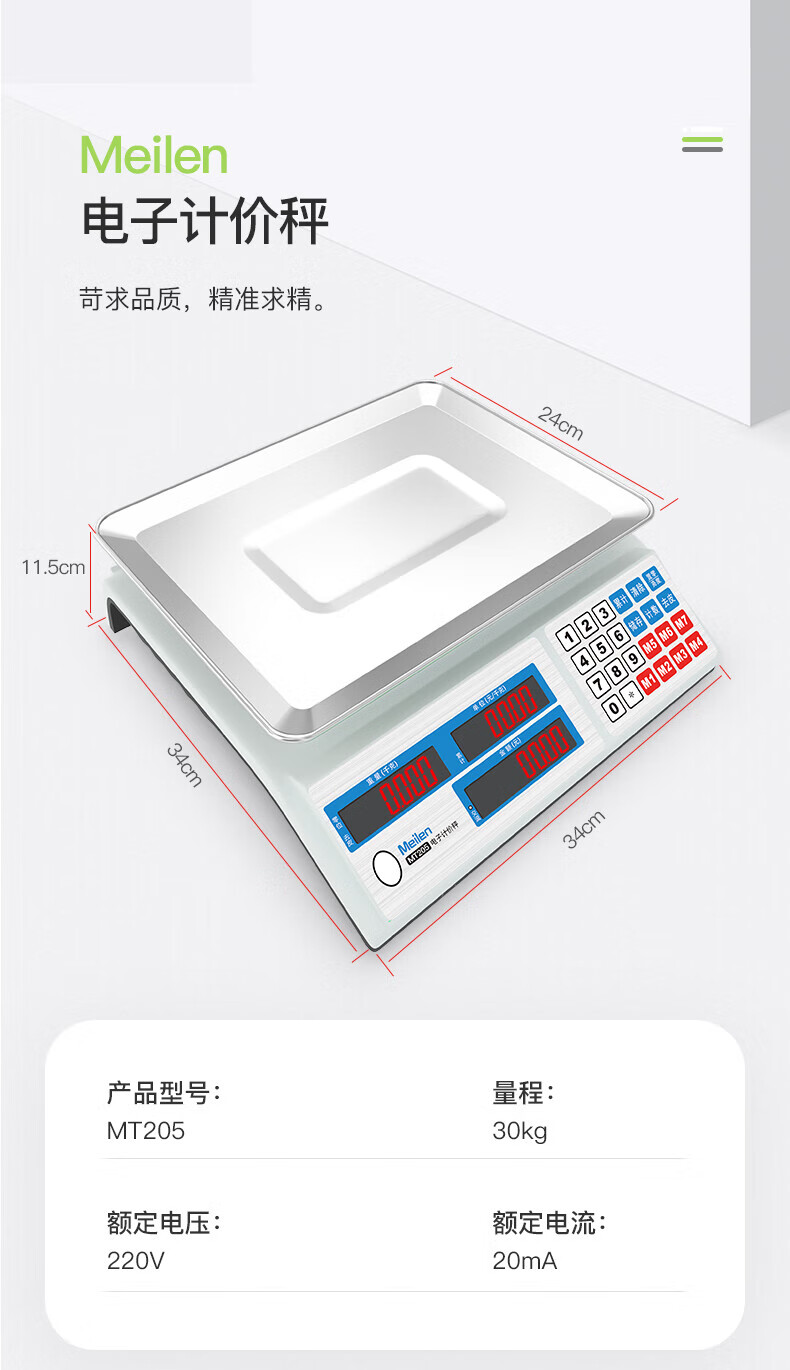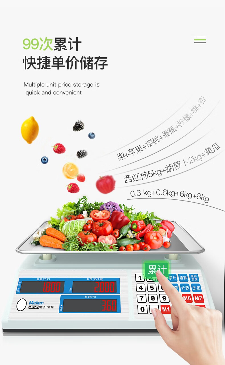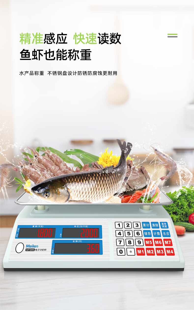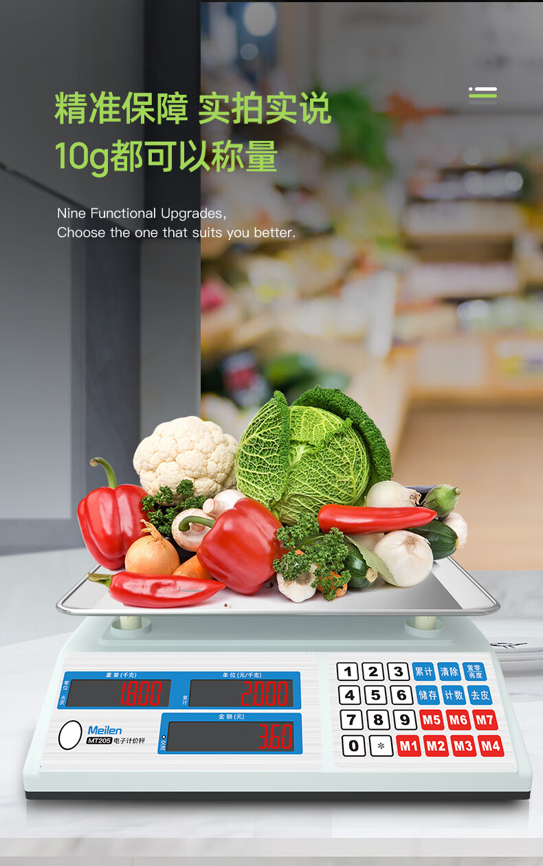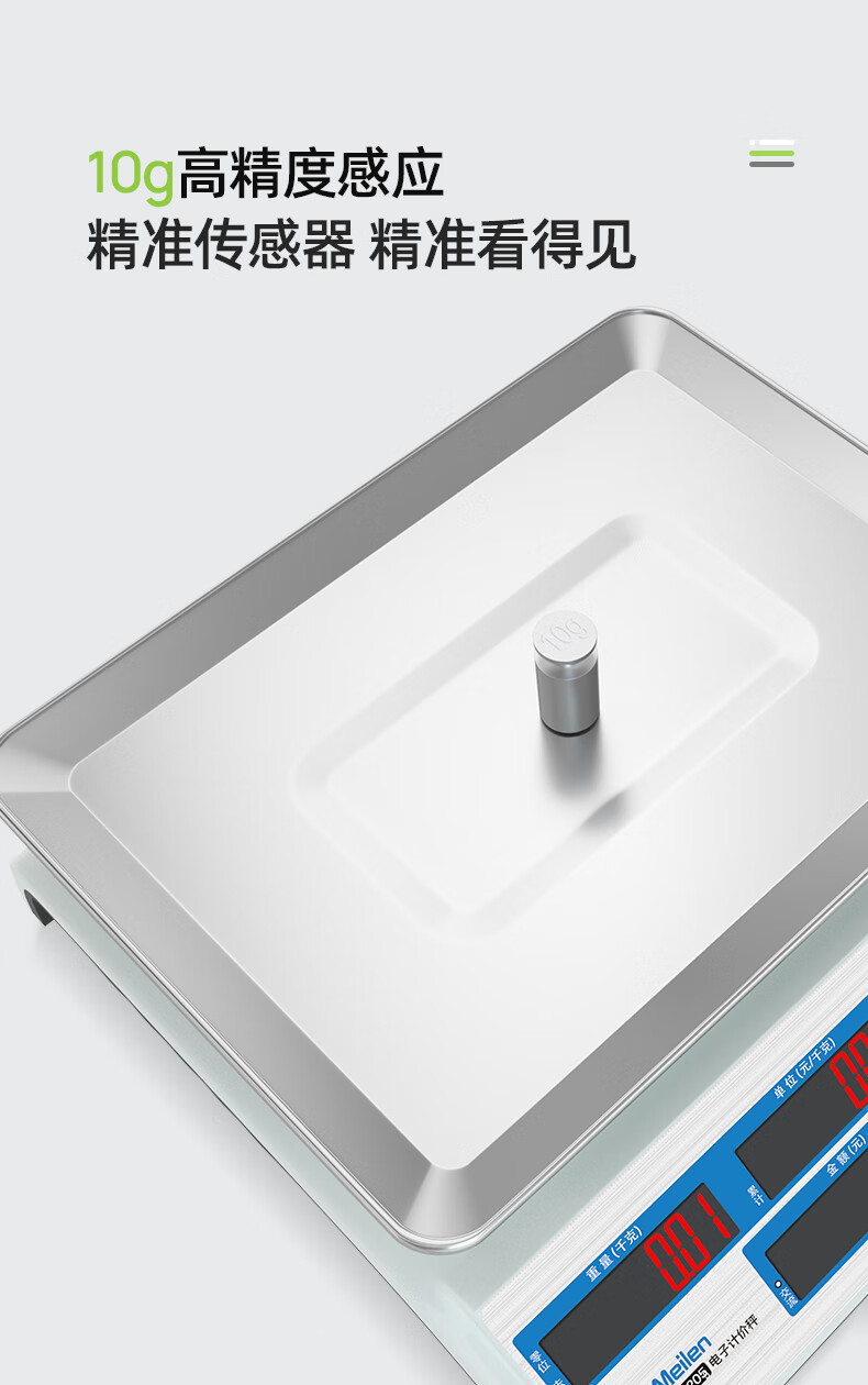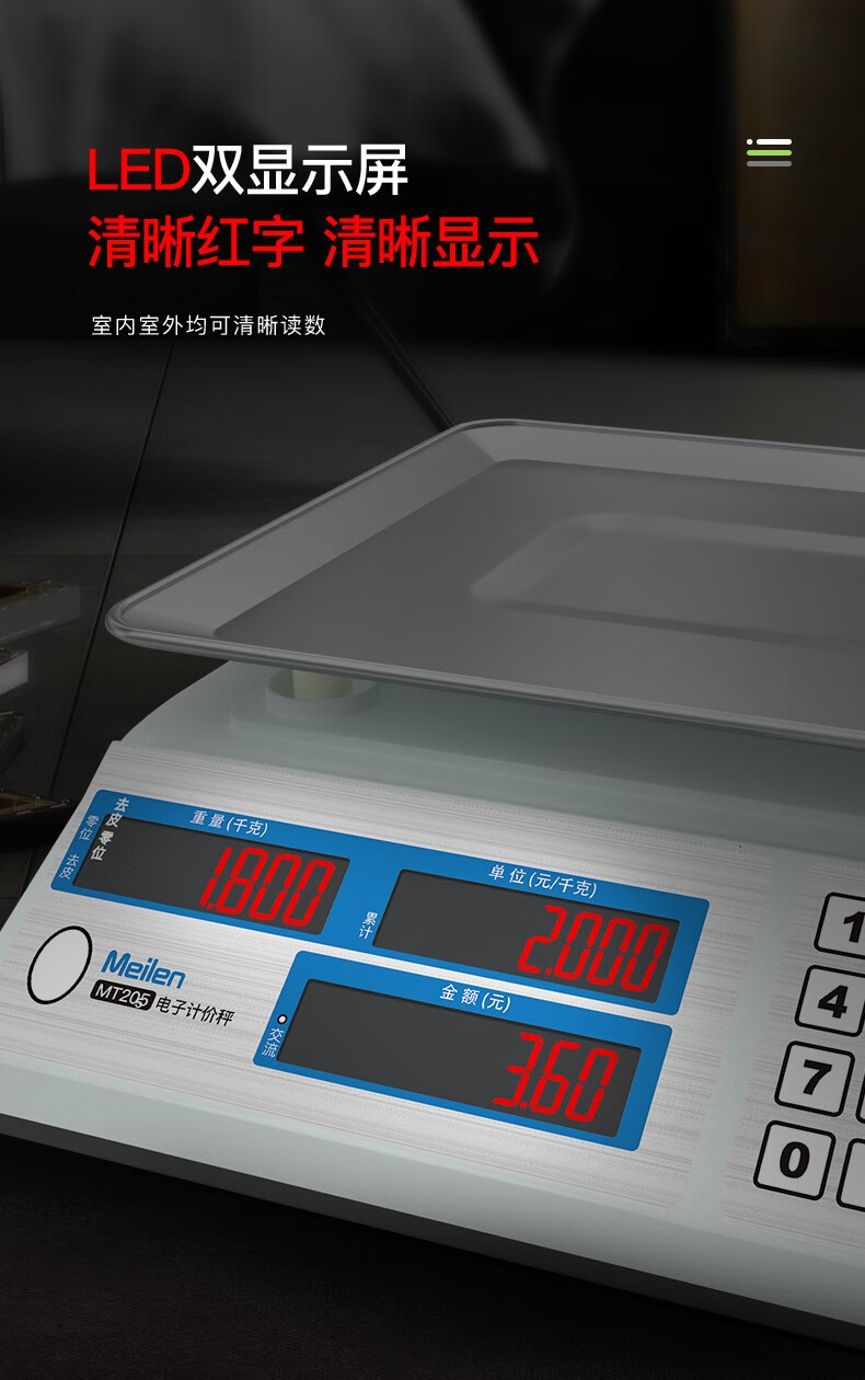 Meilen weighing electronic scale commercial high-precision counting scale 30kg vegetable weighing scale food gram scale household supermarket vegetable market fruit and vegetable charging price scale red letter display LED, 30 kg, 3 hours fast charge