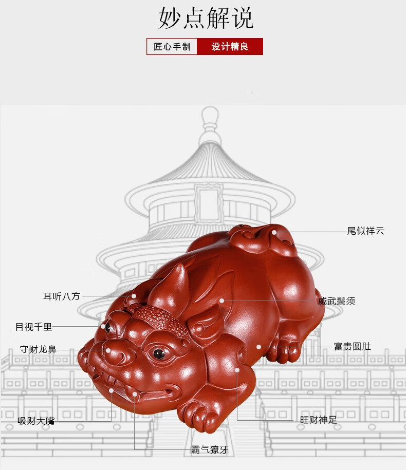 Yuyi Pavilion is a good gift for Yixing purple clay tea pet ornaments. It can be used to raise handmade tea and play with to attract wealth. The little Pixiu is powerful and powerful in all directions.