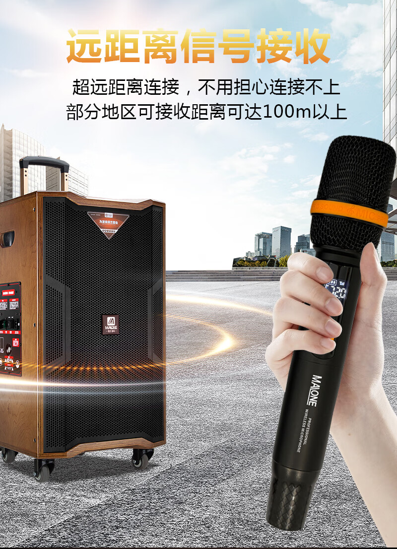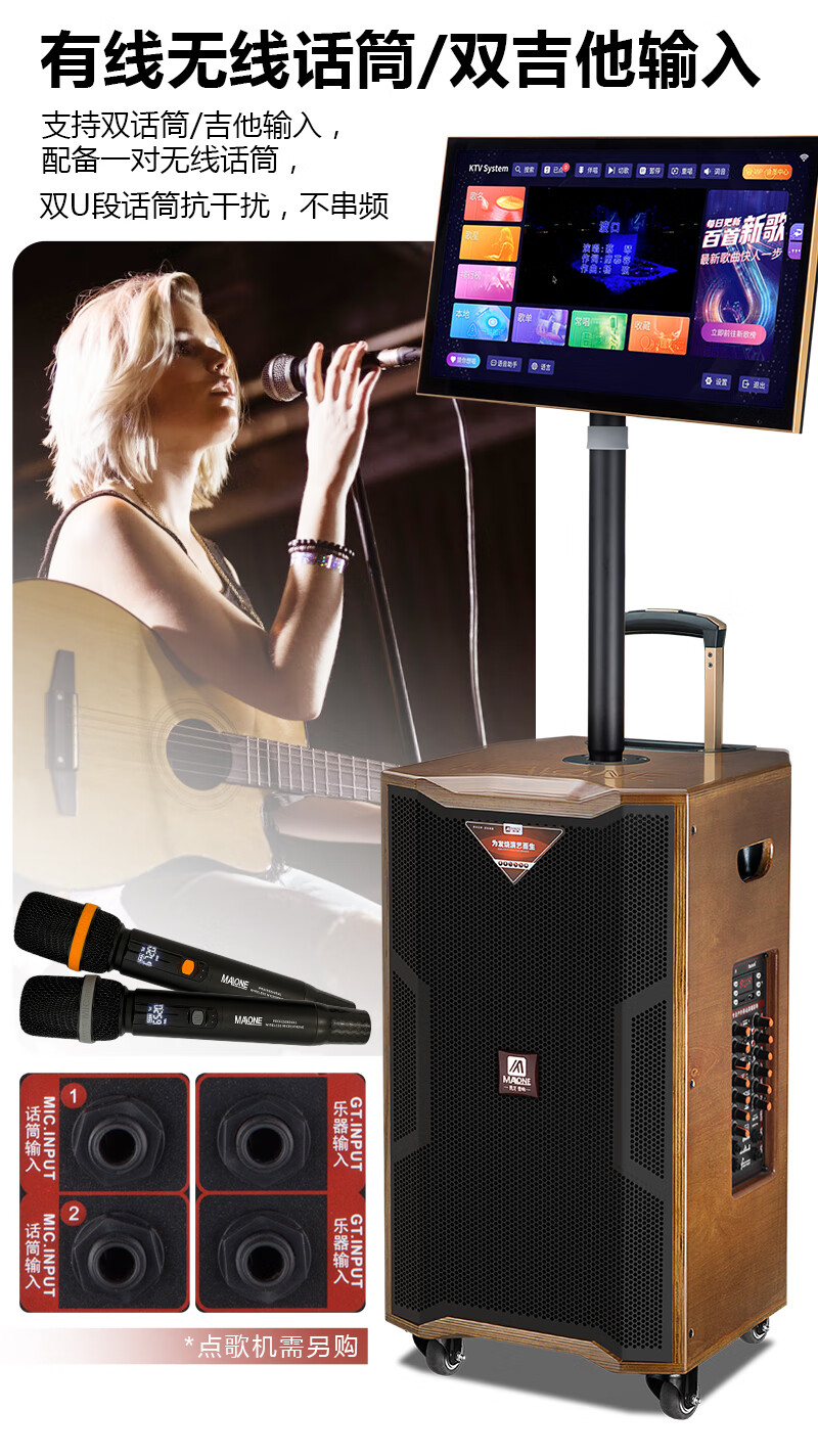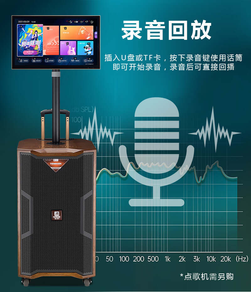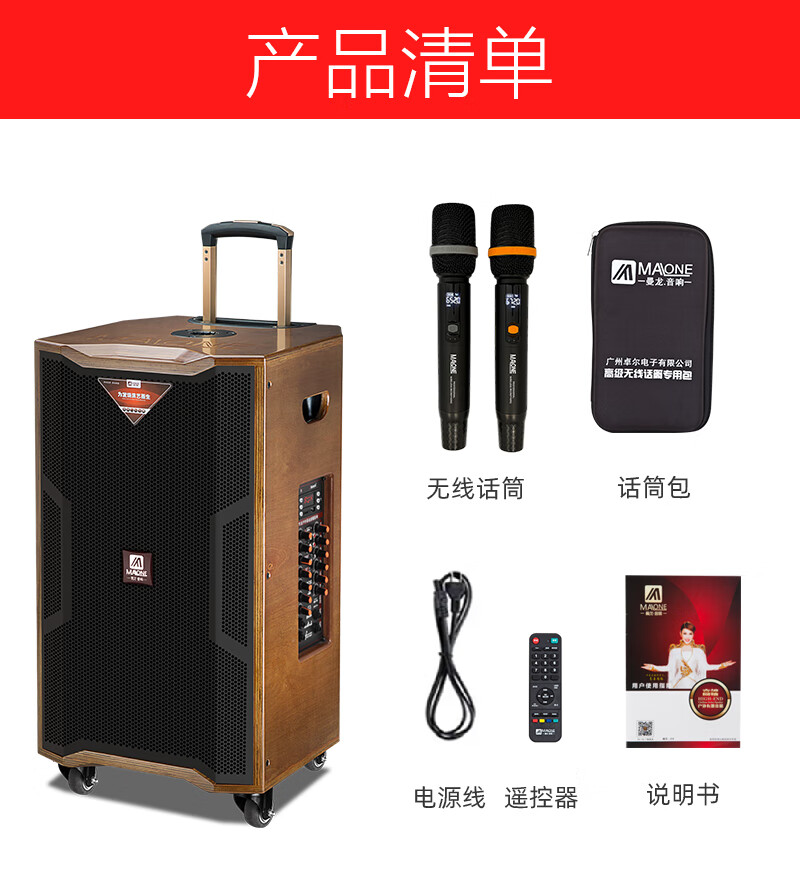 MALONE outdoor square dance audio high-power heavy bass live broadcast singing karaoke performance with Bluetooth sound card wireless microphone portable trolley speaker 10-inch audio + 18.5-inch karaoke machine 500G official standard configuration