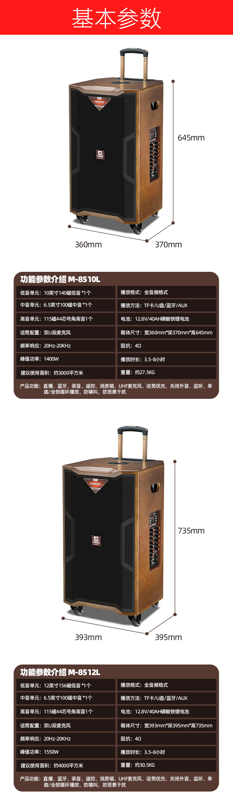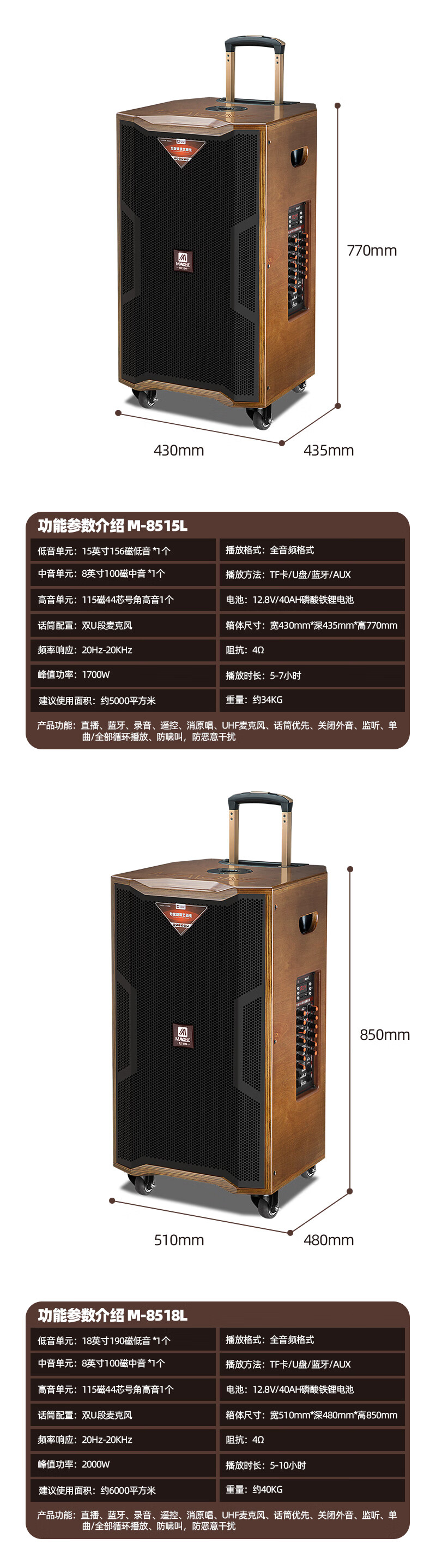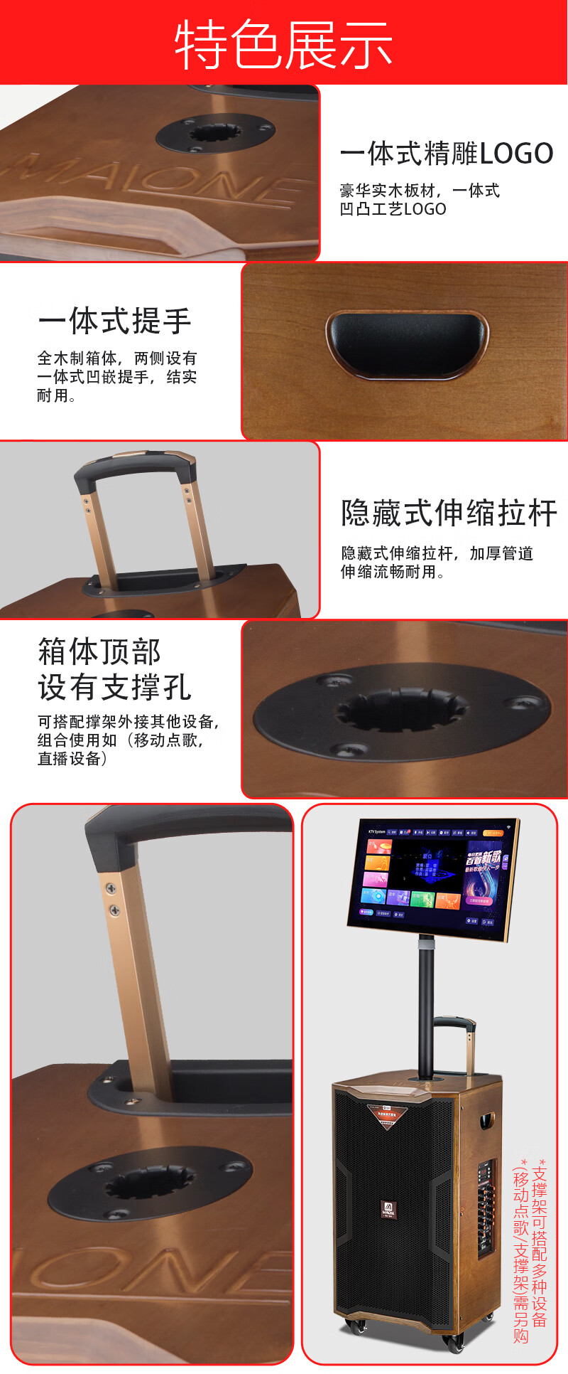 MALONE outdoor square dance audio high-power heavy bass live broadcast singing karaoke performance with Bluetooth sound card wireless microphone portable trolley speaker 10-inch audio + 18.5-inch karaoke machine 500G official standard configuration