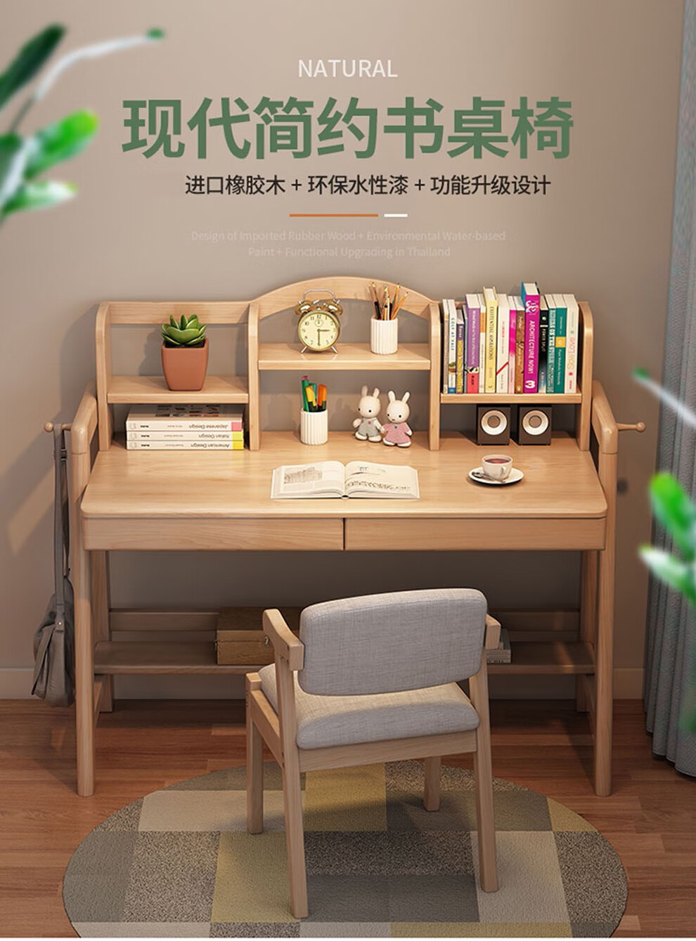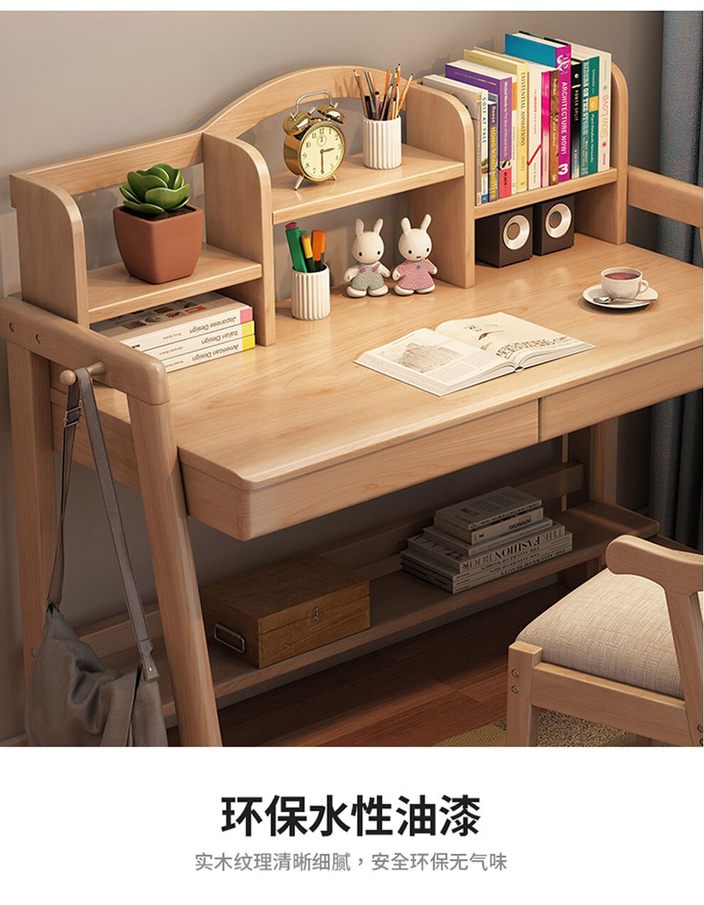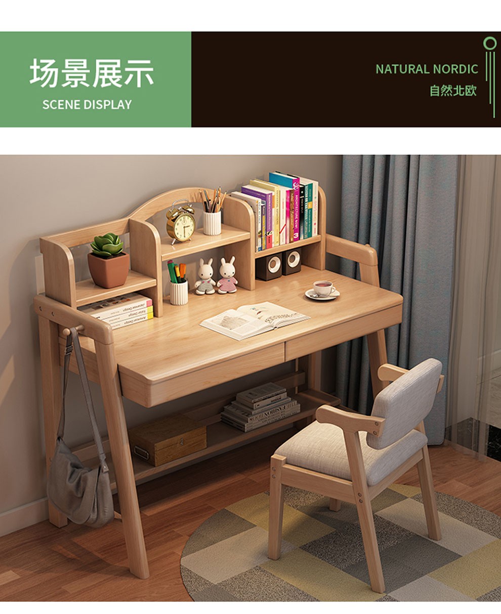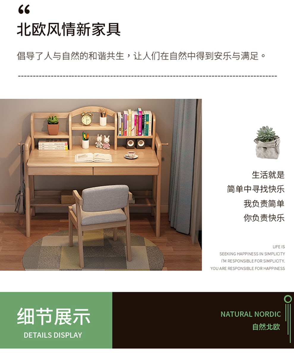Bamboo sound solid wood desk student study desk Nordic simple study computer desk home desk bookshelf combination writing desk solid wood color imported solid wood without leather adjustable height 1 meter solid wood single table