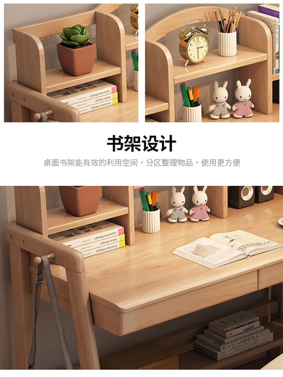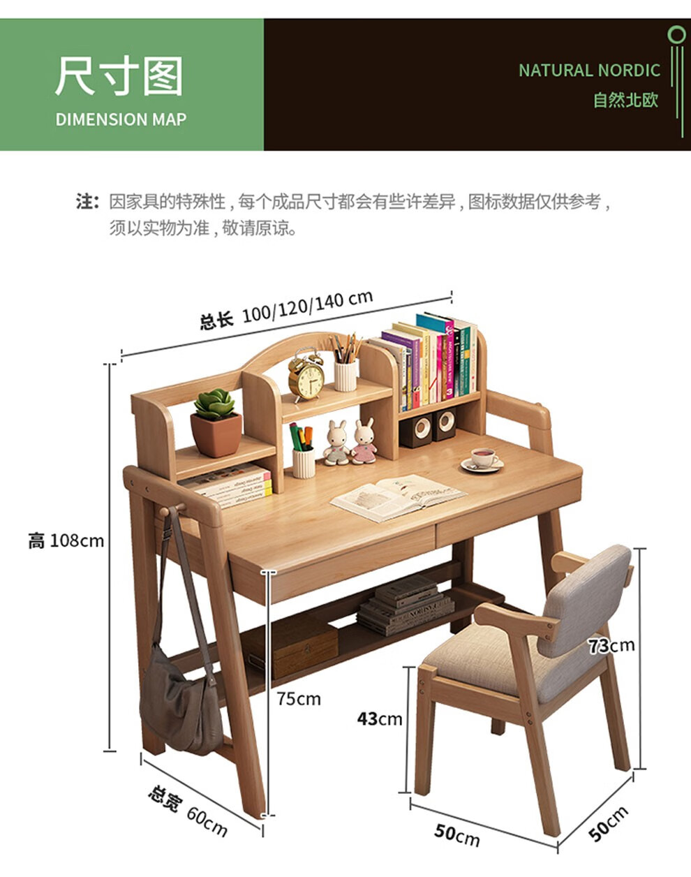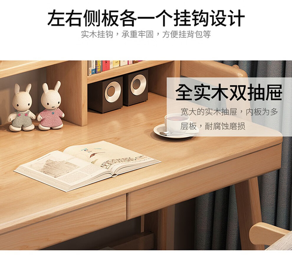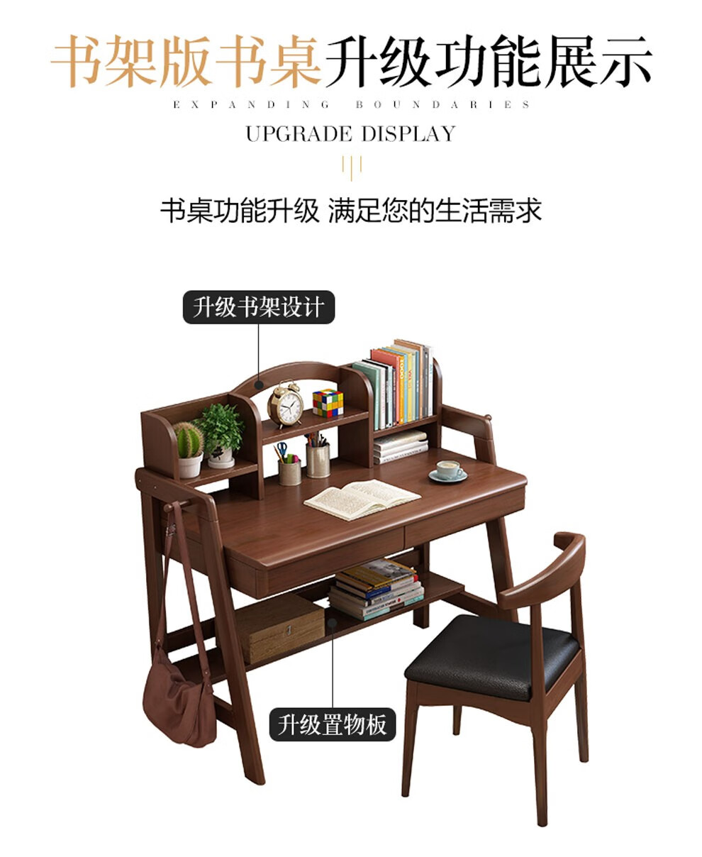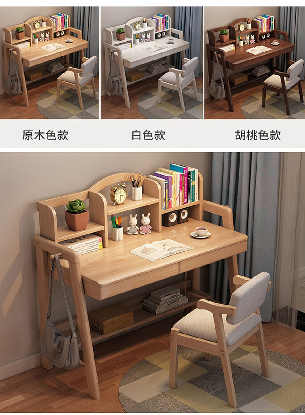 Bamboo sound solid wood desk student study desk Nordic simple study computer desk home desk bookshelf combination writing desk solid wood color imported solid wood without leather adjustable height 1 meter solid wood single table