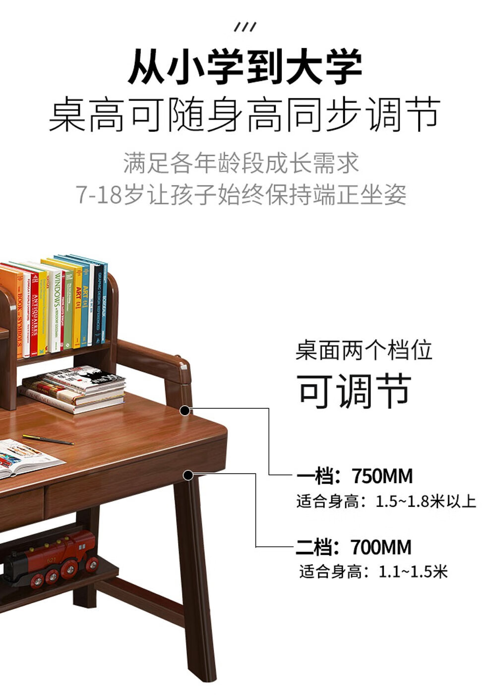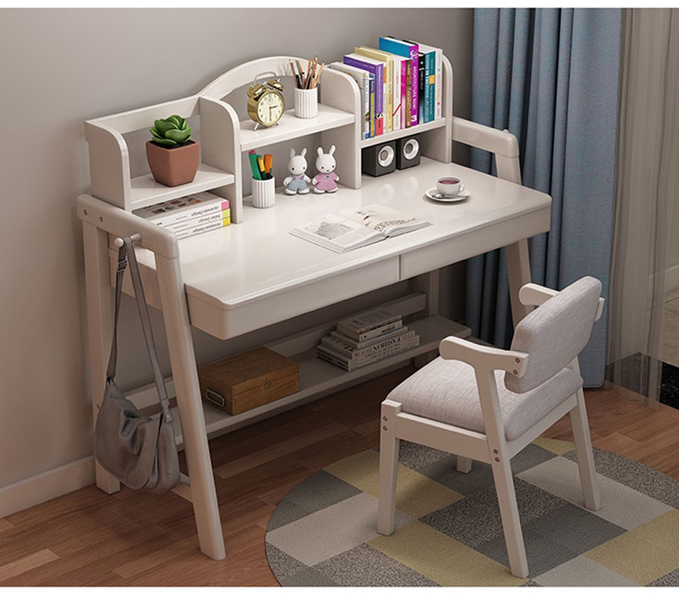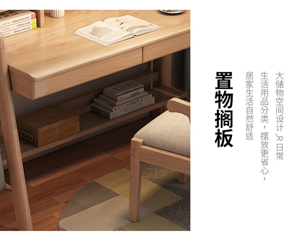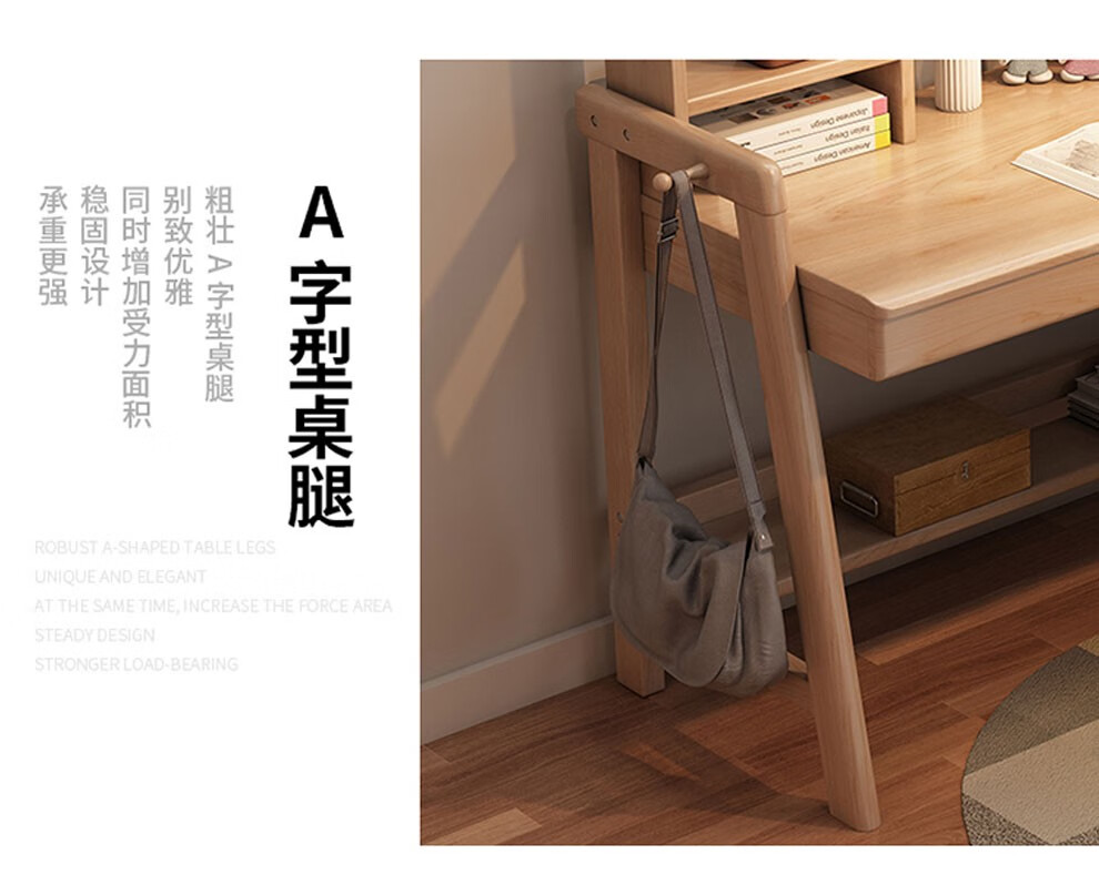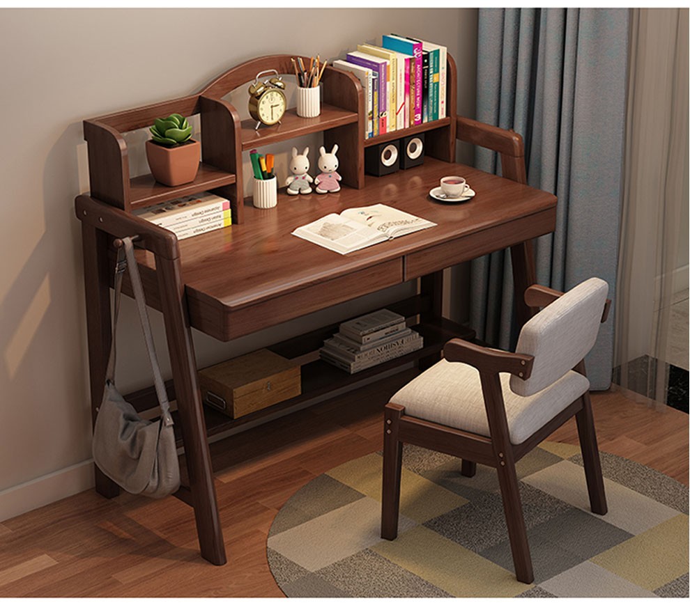 Bamboo sound solid wood desk student study desk Nordic simple study computer desk home desk bookshelf combination writing desk solid wood color imported solid wood without leather adjustable height 1 meter solid wood single table