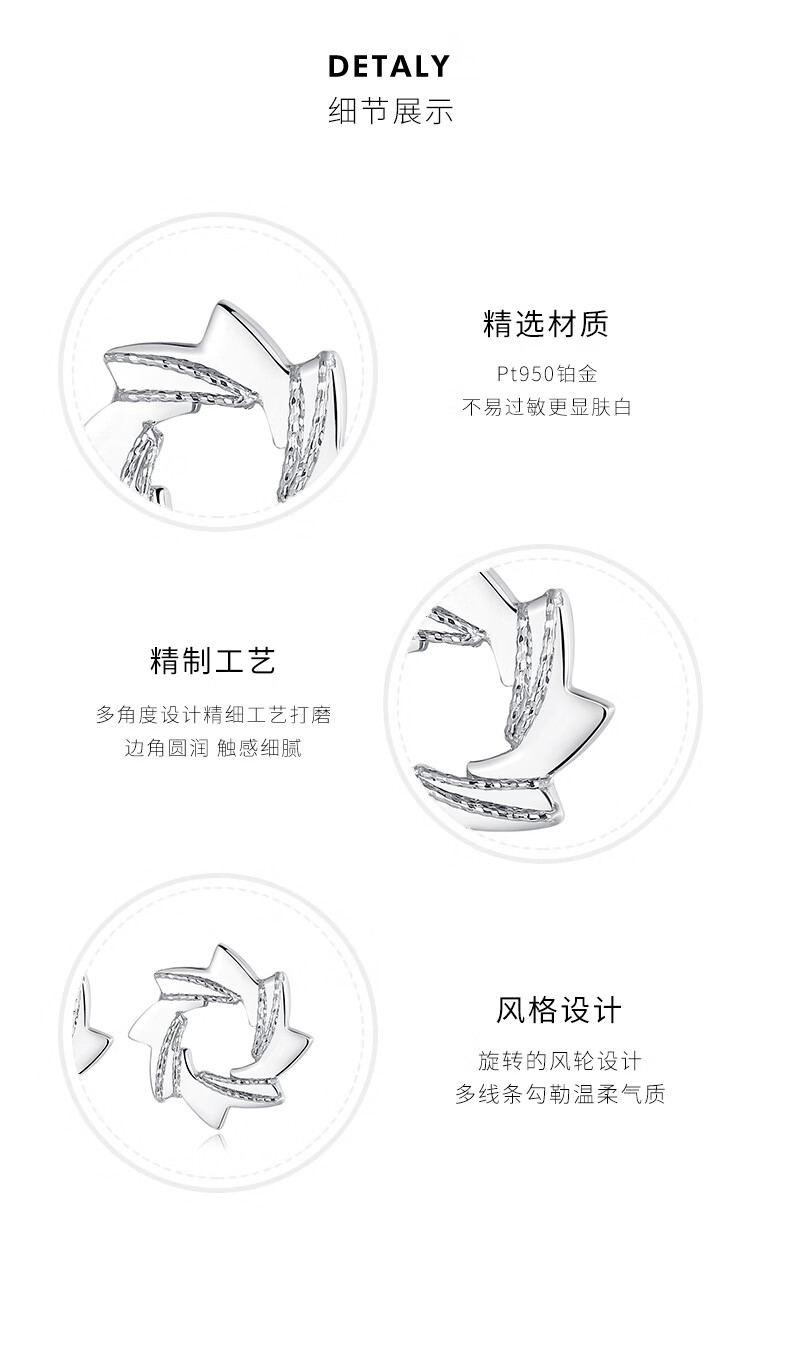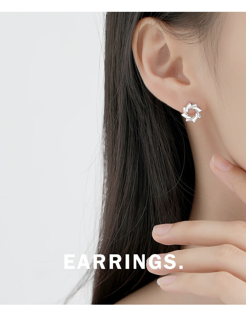Aido Diamond pt950 platinum earrings for women, white gold whirling windmill earrings, fashionable and versatile sparkling earrings, a pair, weighing 3.2-3.4 grams