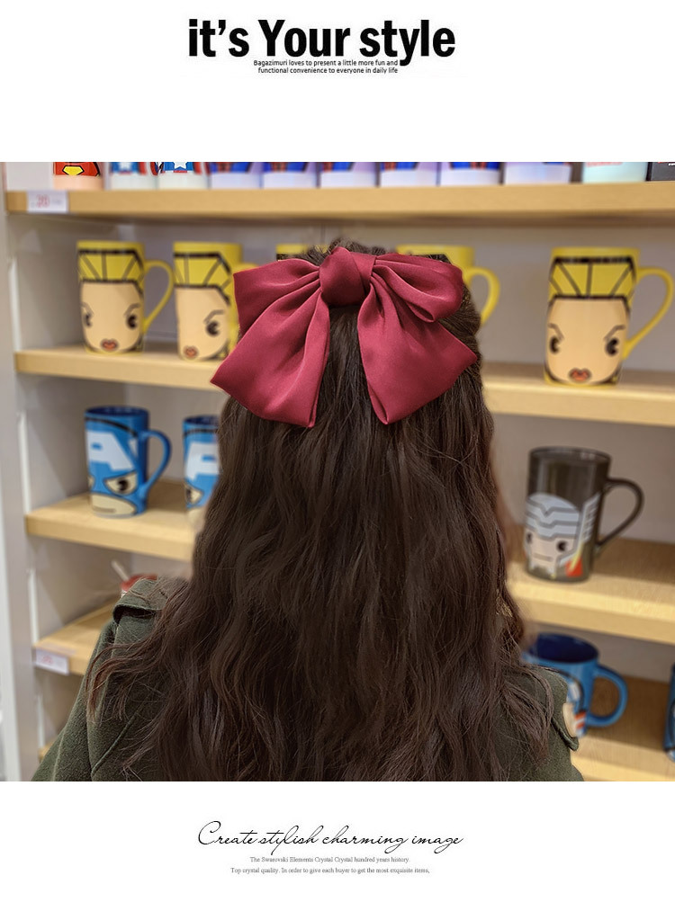 Lingmeng Korean style bow hairpin, princess hair, hair accessories on the back of the head, spring clip, big children's hairpin, performance accessories, red hairpin 1 piece