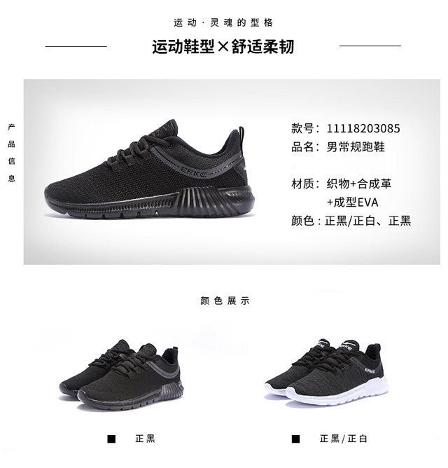 Hongxing Erke Men's Casual Running Shoes Wear-resistant and Non-slip Men's Running Shoes 11118203085 Black/White 41