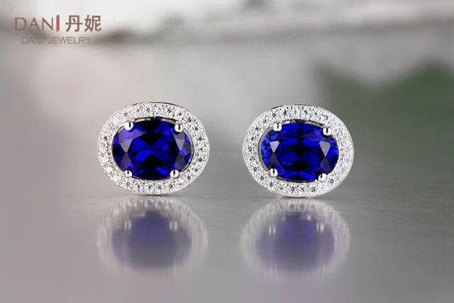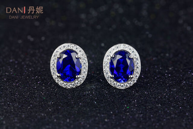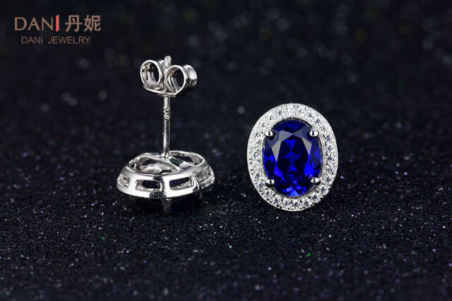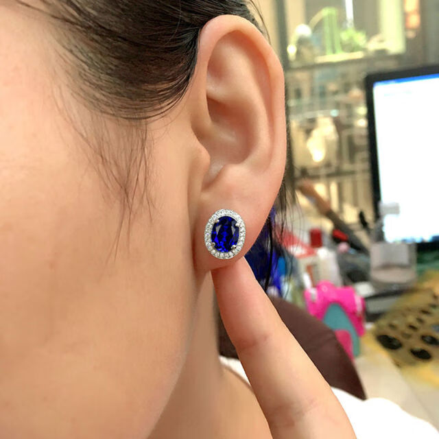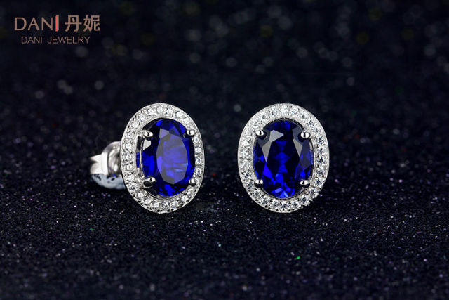 Sapphire 925 silver stud earrings set with colorful sapphire blue corundum tanzanite jewelry earrings plated women's picture color blue earrings pair