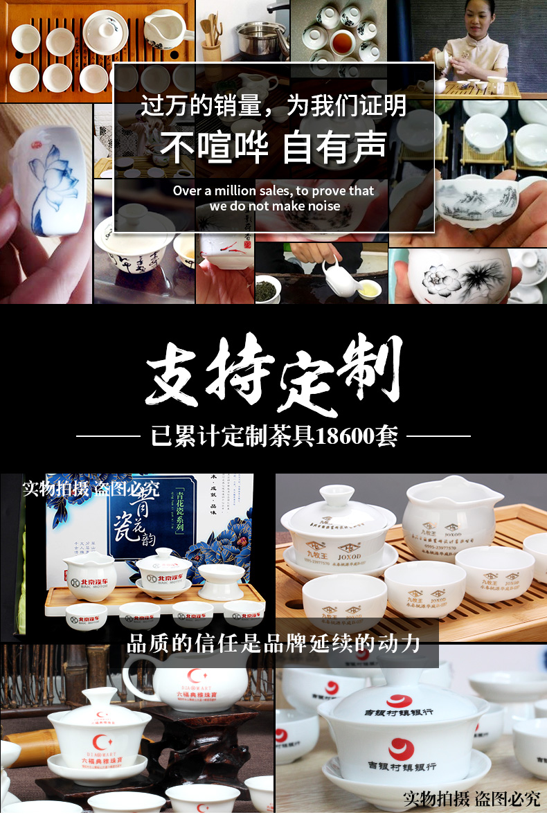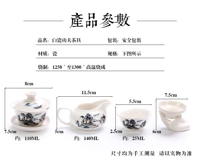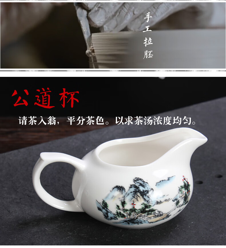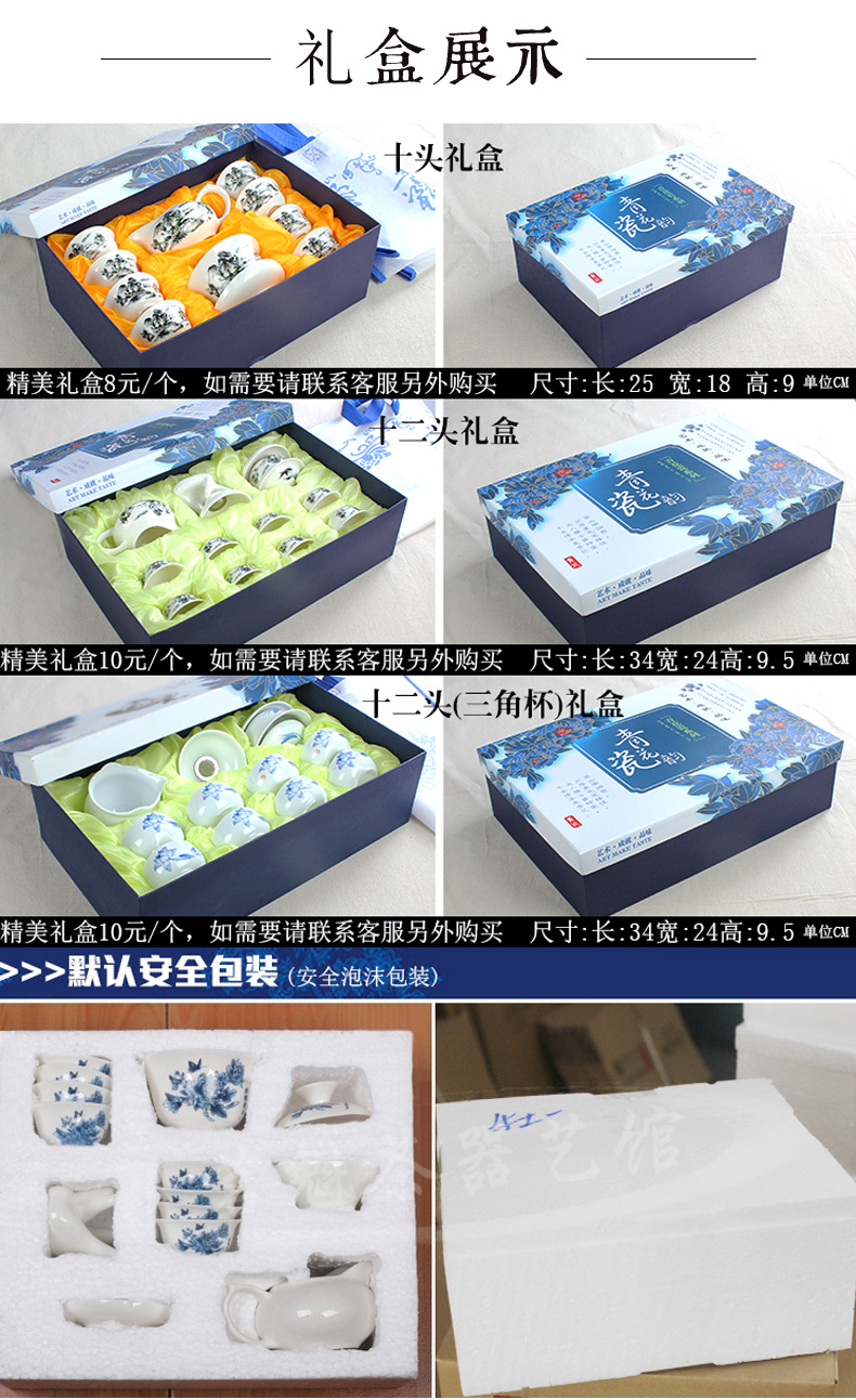 Ceramic Kung Fu tea set, home white porcelain tea set, office reception, blue and white teapot, lidded bowl, tea cup, complete tea set, 12-head Kung Fu tea set, Blue Landscape