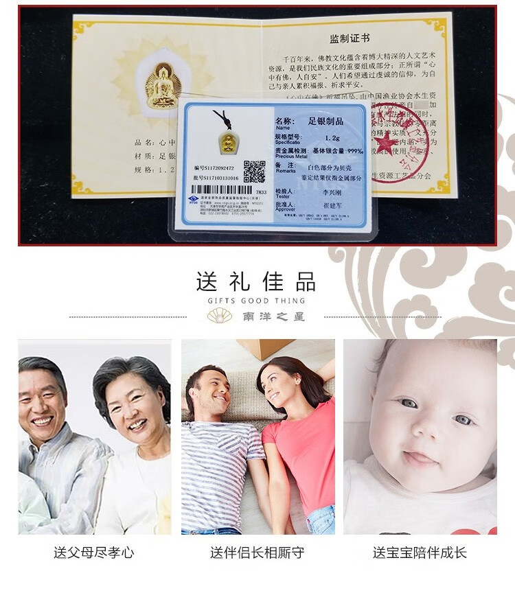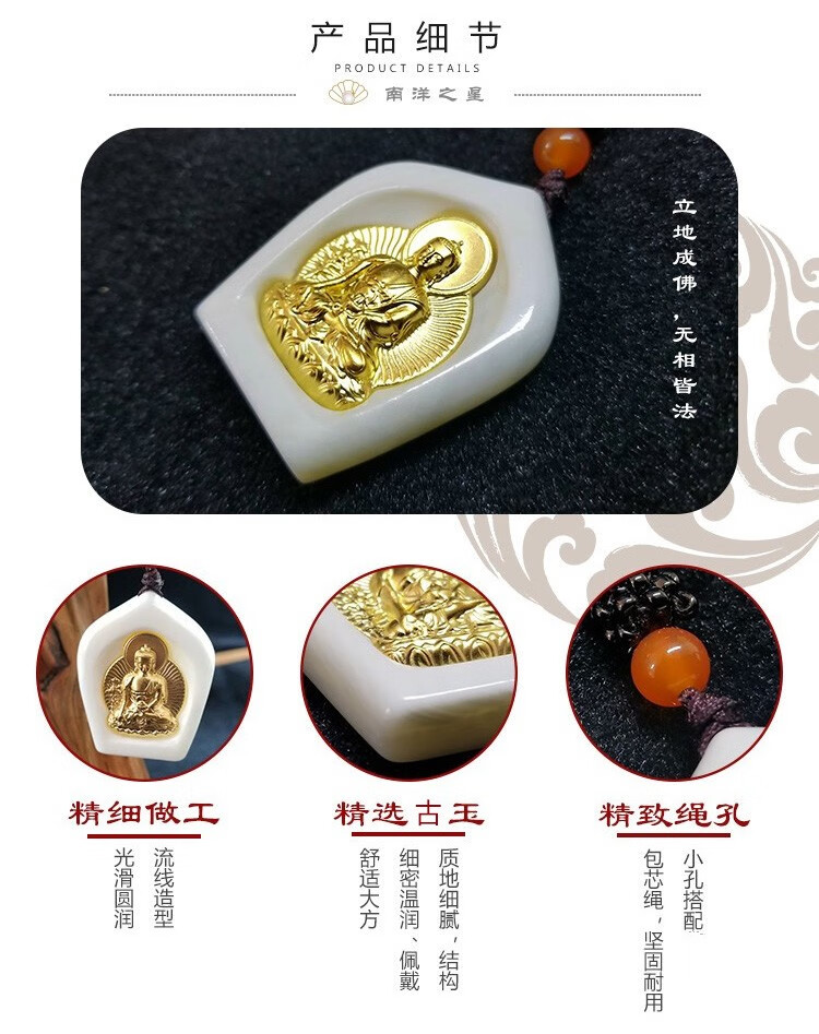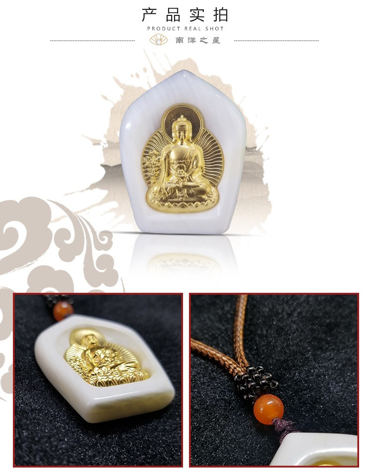 Sadolo Nanyang Star Deep Sea White Jade Pendant Male and Female Protective Buddha Transfer Buddha Amulet Buddha in Heart Comes with Gift Box Certificate