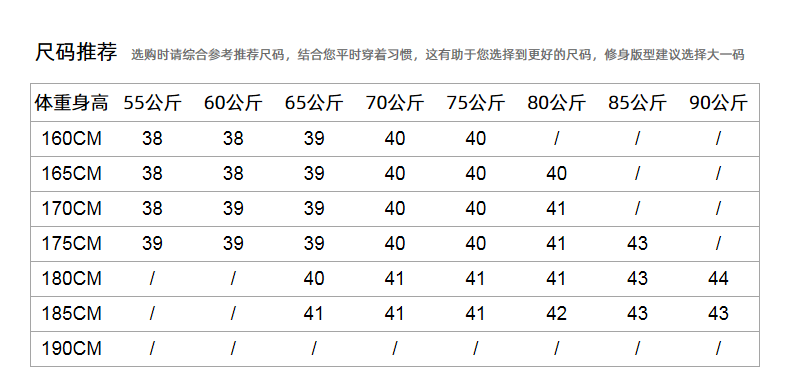 China (cm) 160-165/84-86 165-170 / 88-90 167-172 / 92-96 168-173 / 98-102 170-176 / 106-110