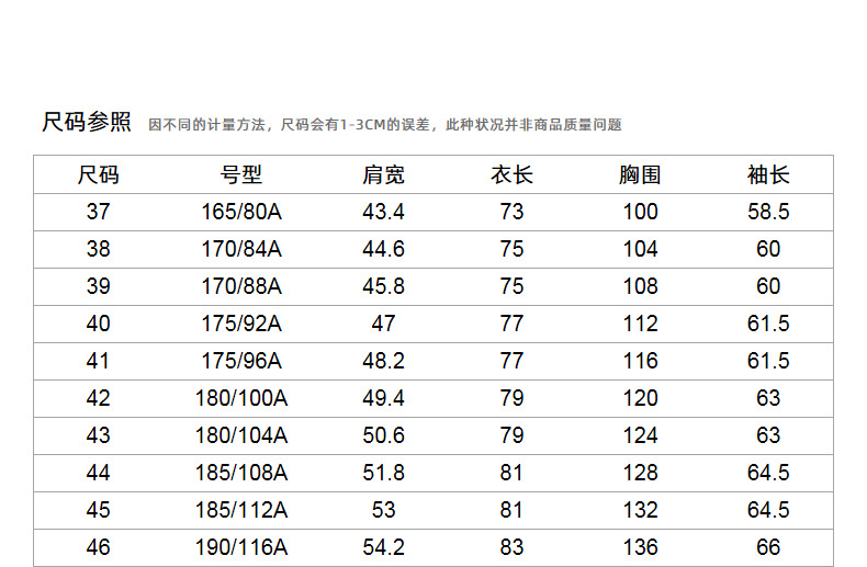 Size (cm) 42 44 46 48 50