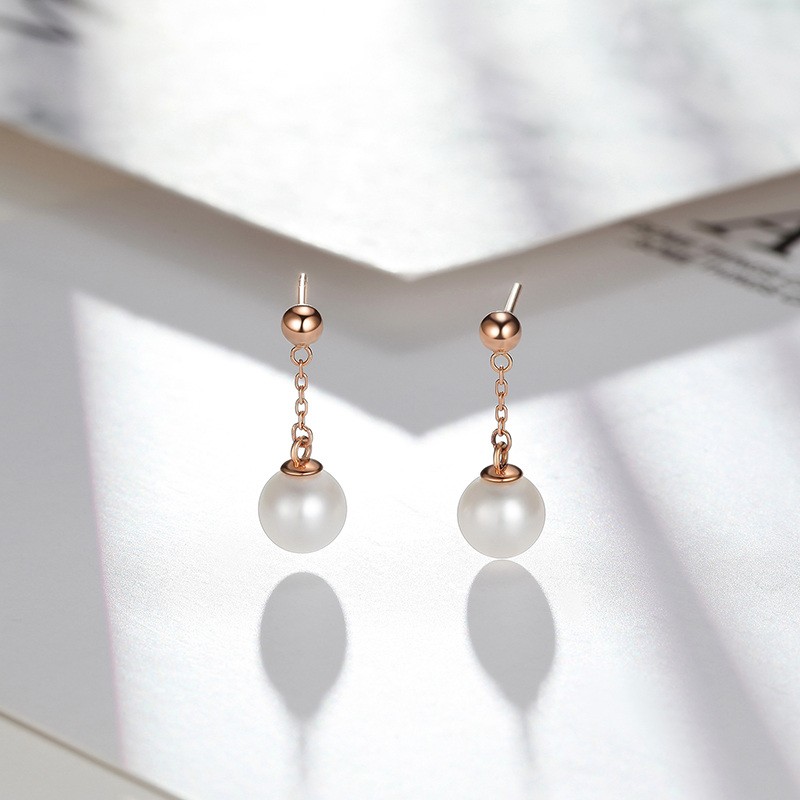 Chao Acer Rhythm 18K Gold Pearl Earrings for Women Rose Gold Color Gold Earrings for Mom and Girlfriend as Birthday Gifts One Pair