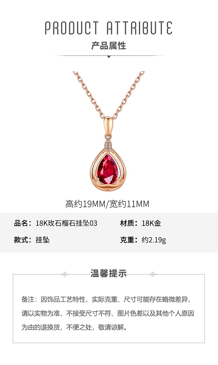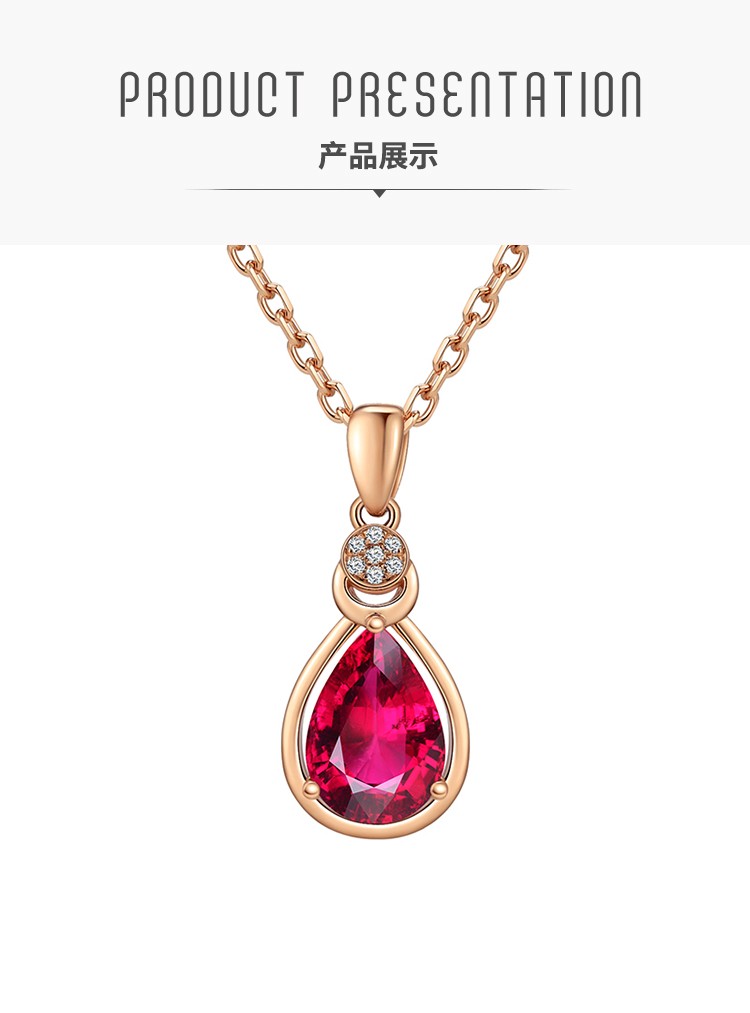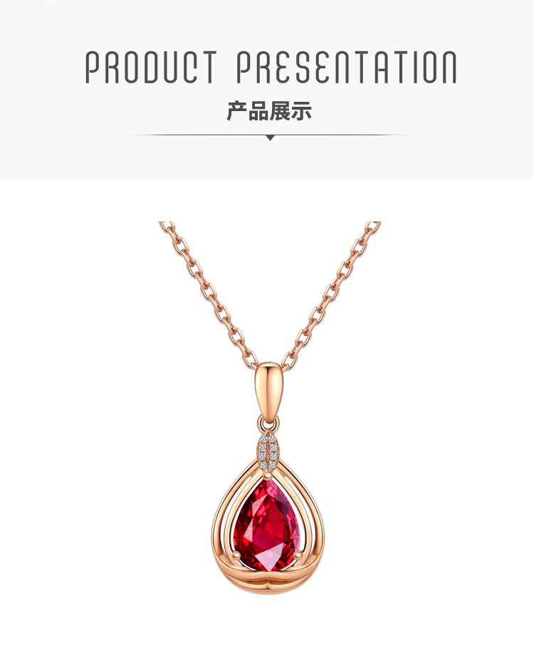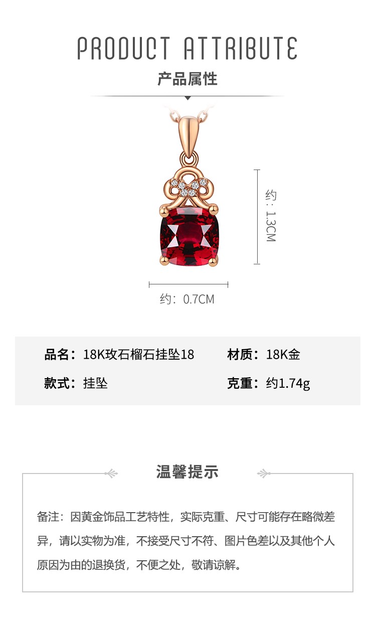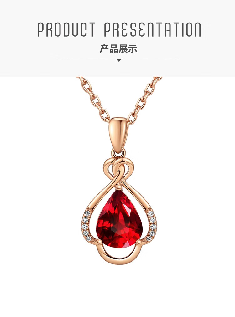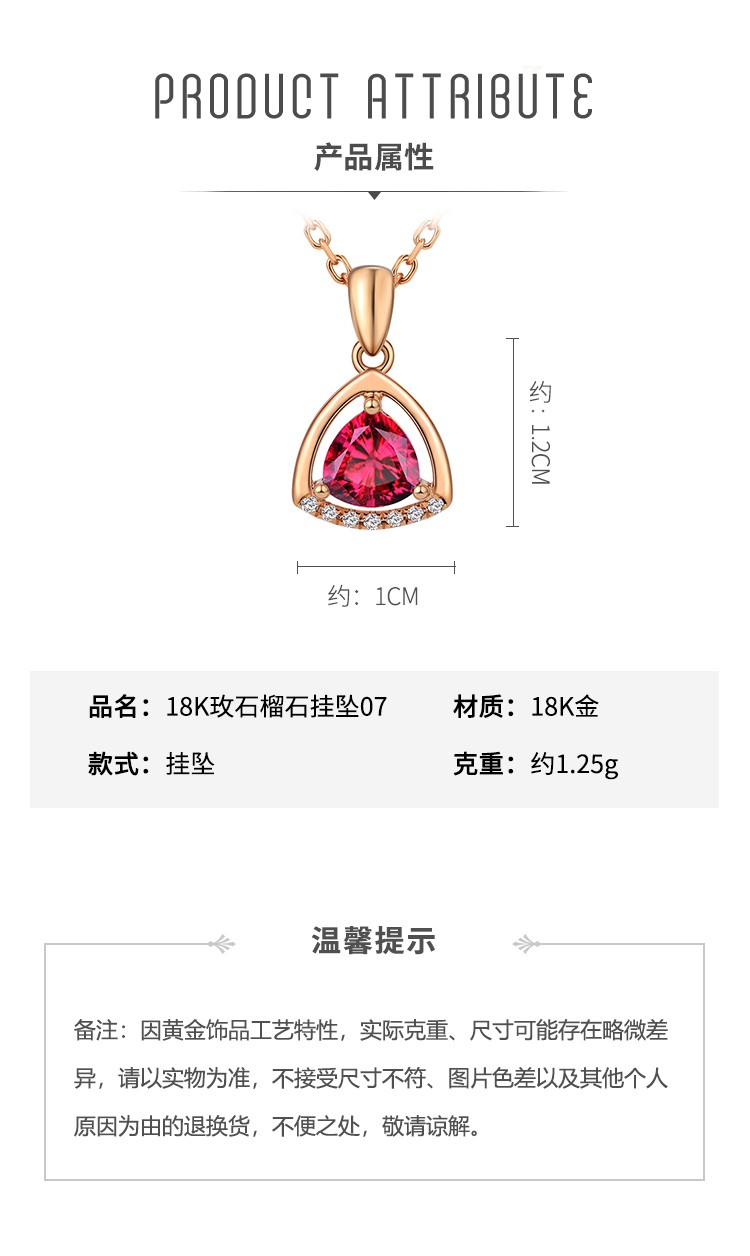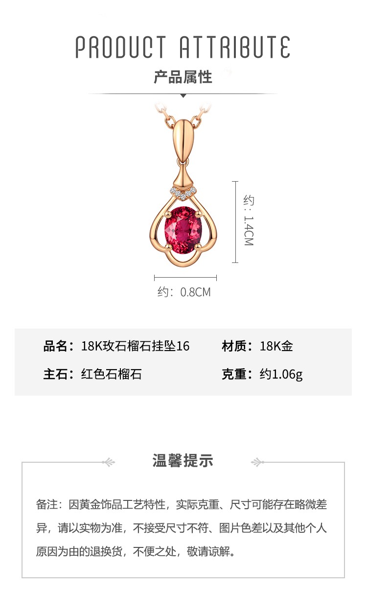 Laomiao 18k gold necklace garnet pendant women's colorful treasure as a Chinese Valentine's Day gift for girlfriend and mother (not including necklace) total weight about 1.25g