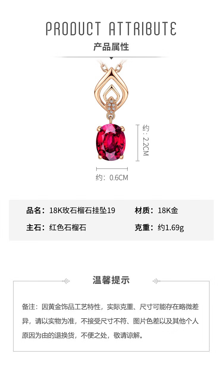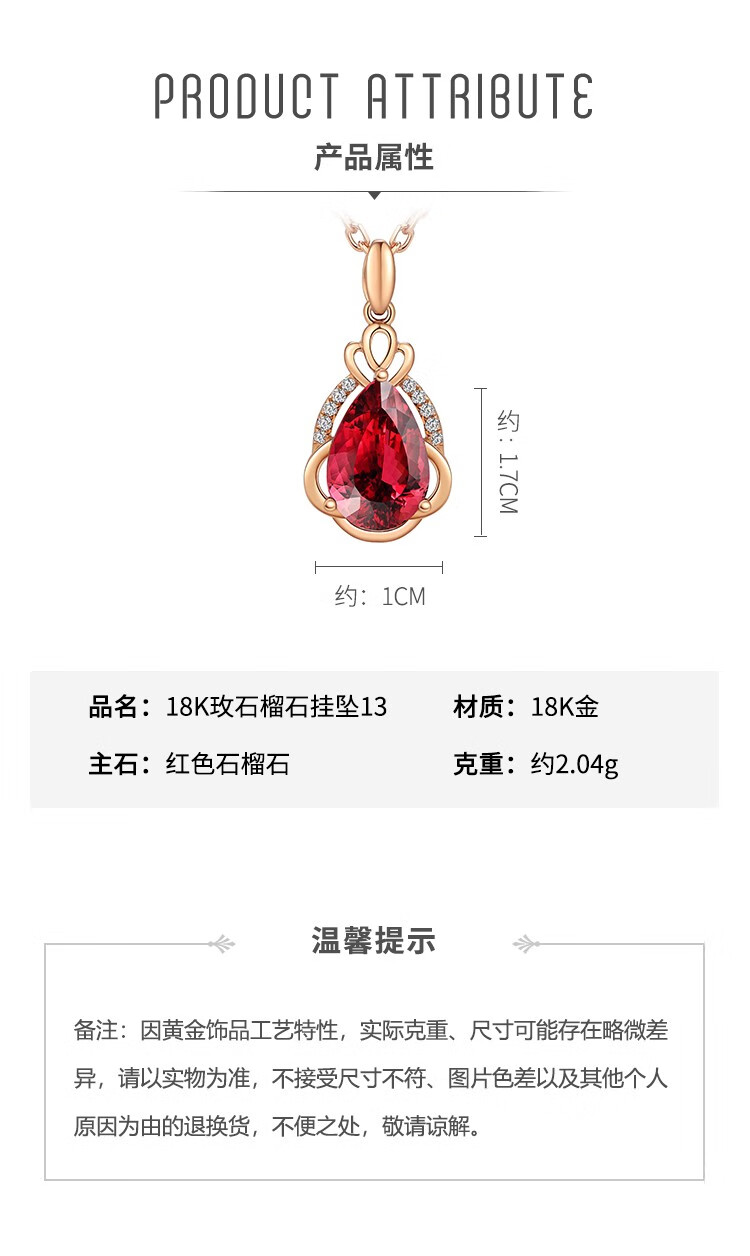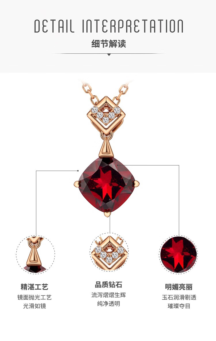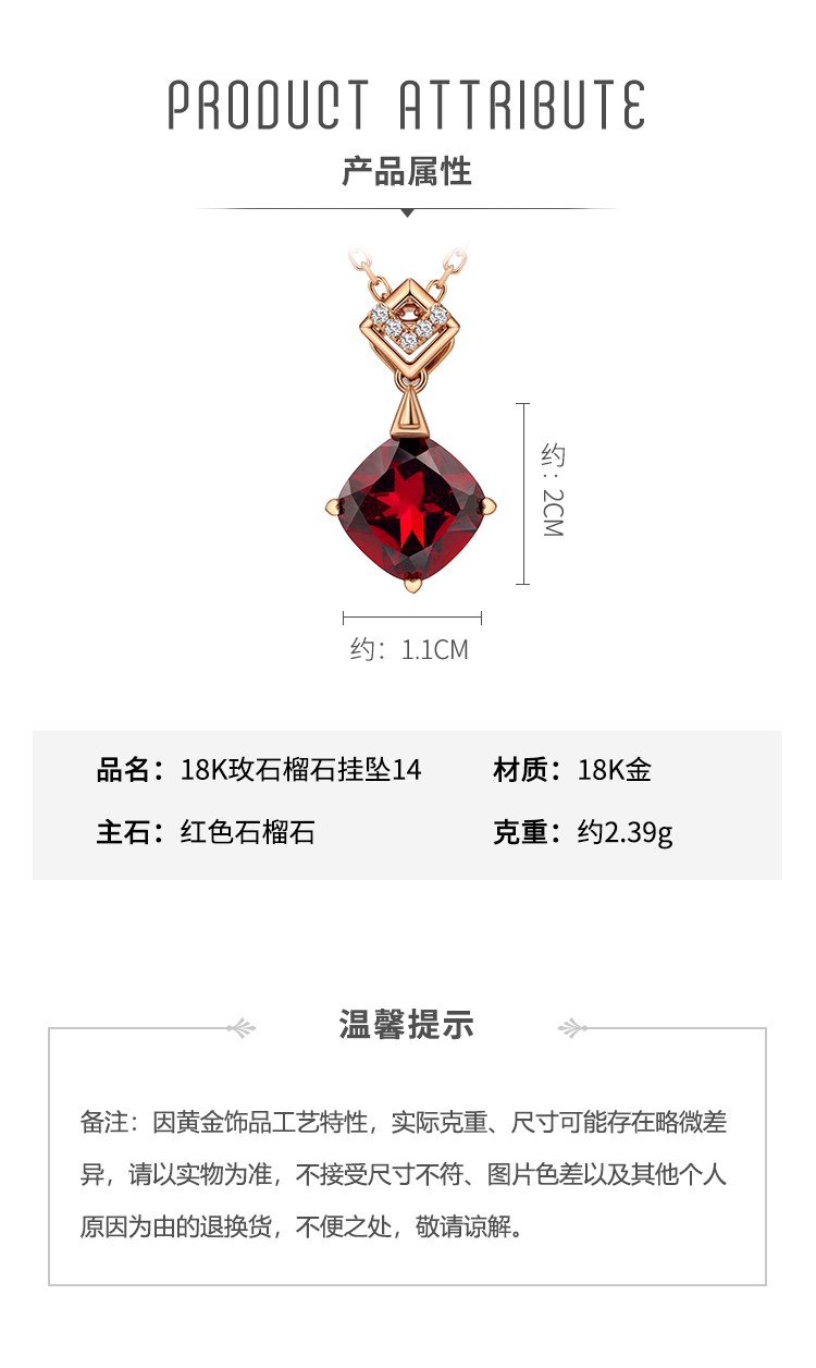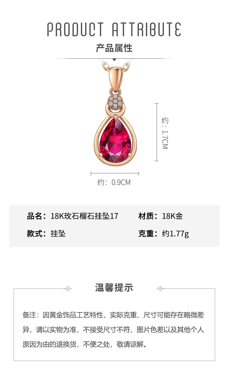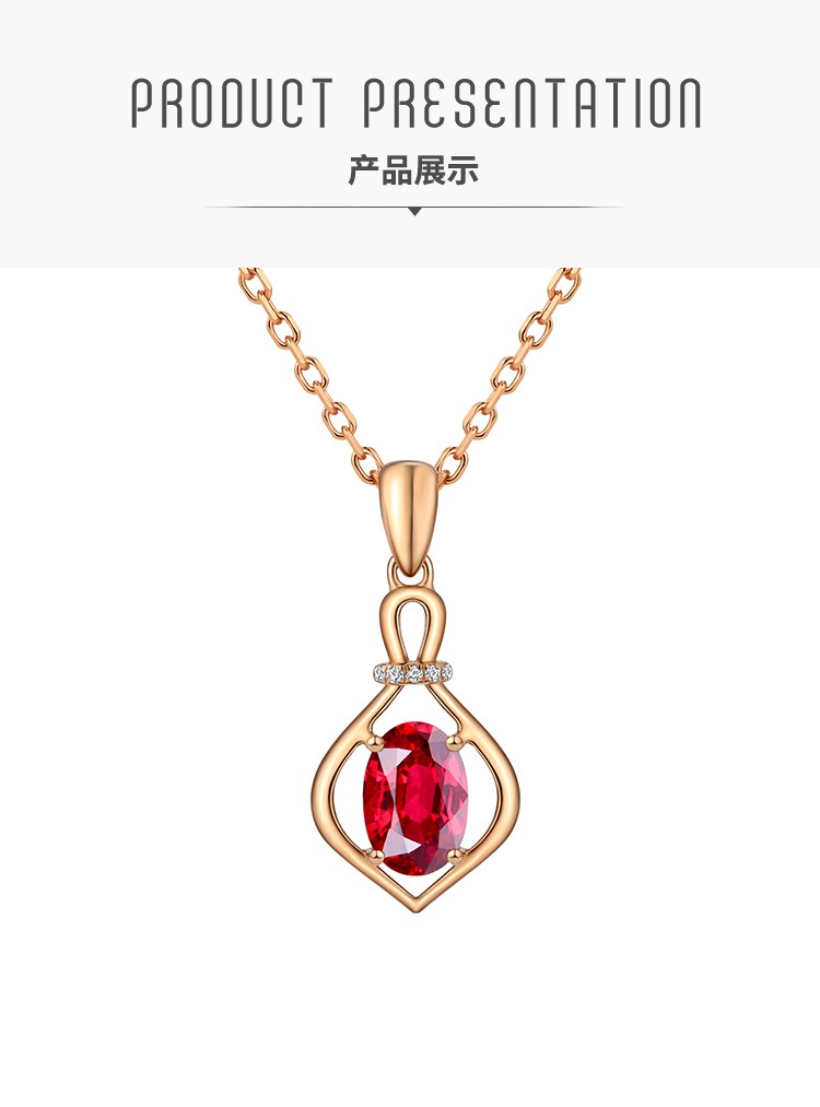 Laomiao 18k gold necklace garnet pendant women's colorful treasure as a Chinese Valentine's Day gift for girlfriend and mother (not including necklace) total weight about 1.25g