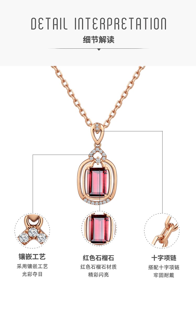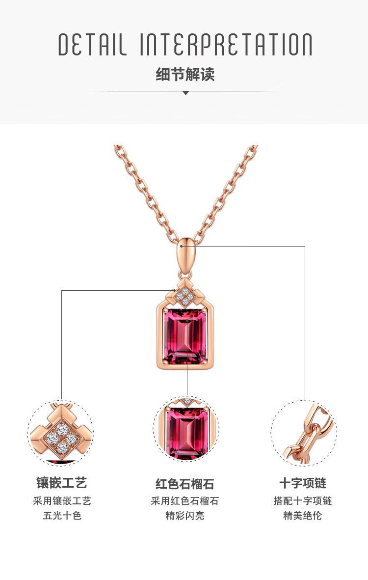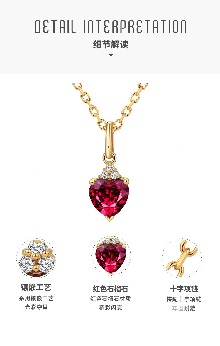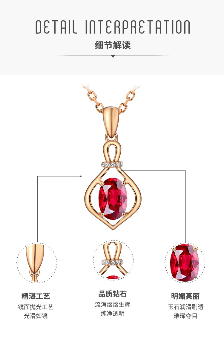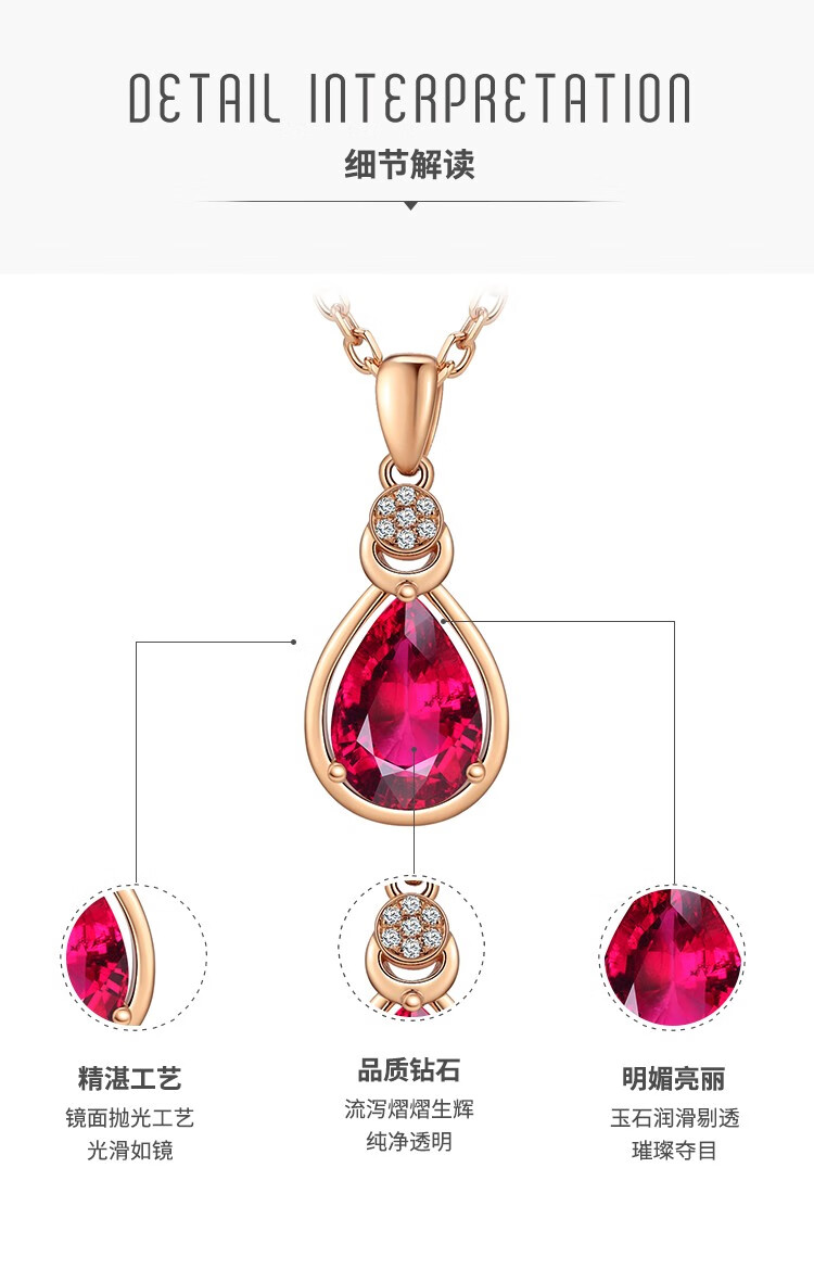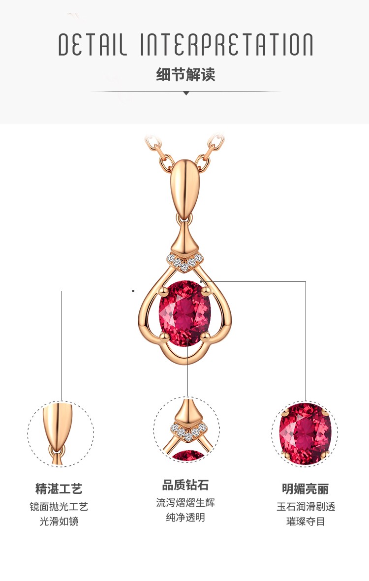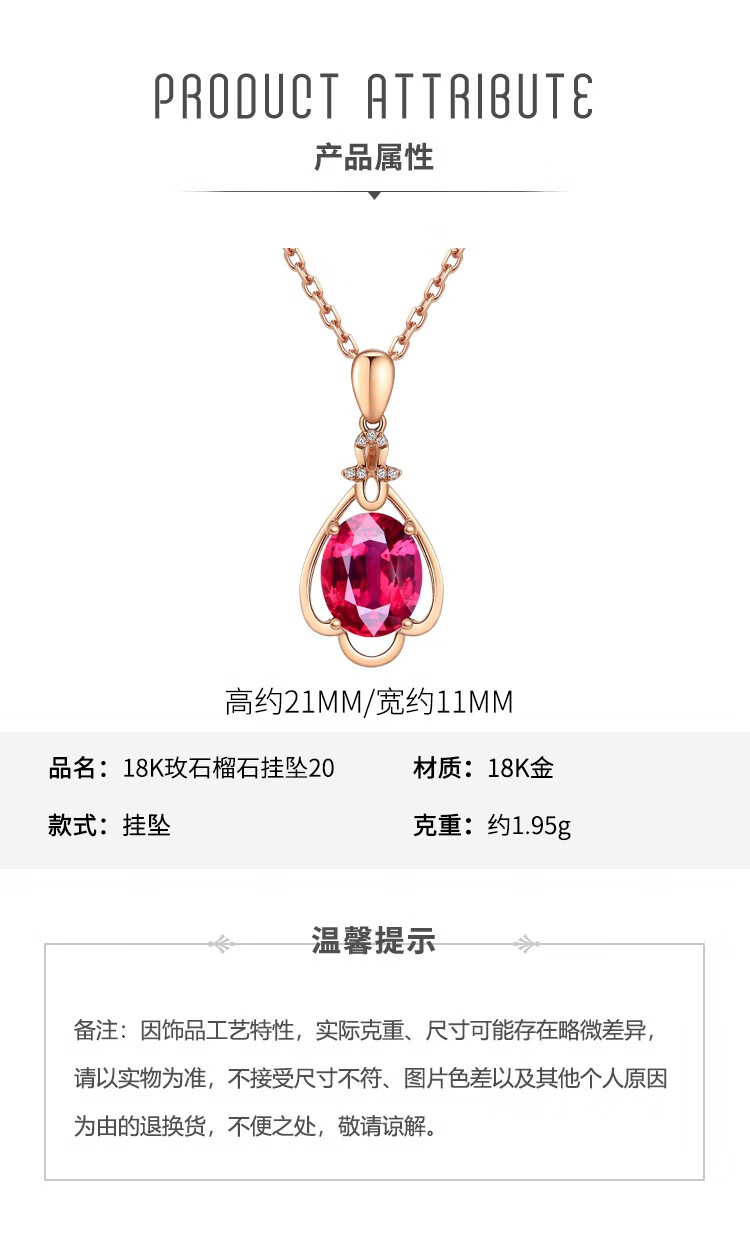 Laomiao 18k gold necklace garnet pendant women's colorful treasure as a Chinese Valentine's Day gift for girlfriend and mother (not including necklace) total weight about 1.25g