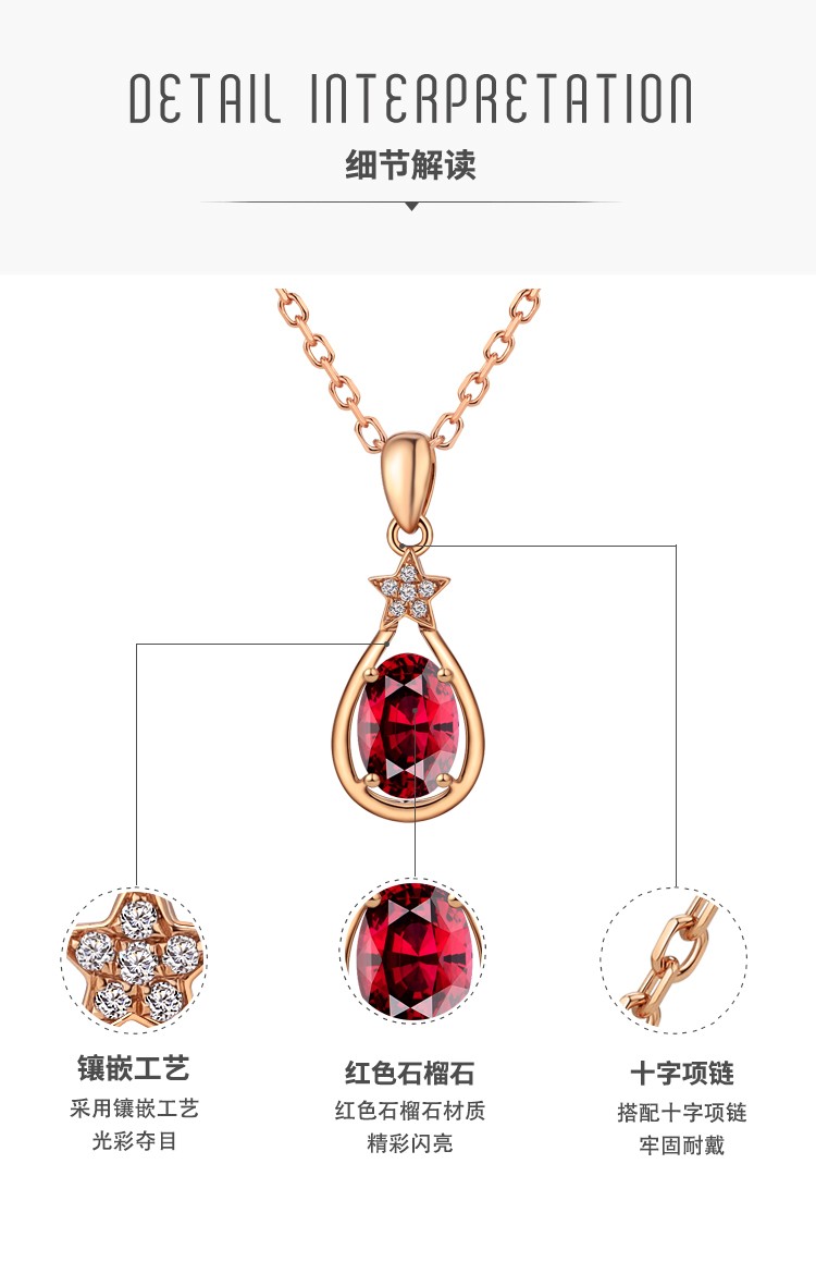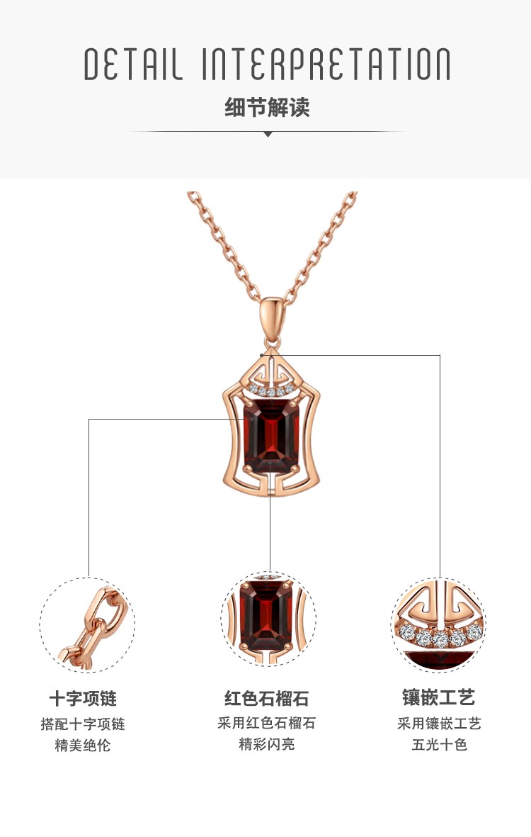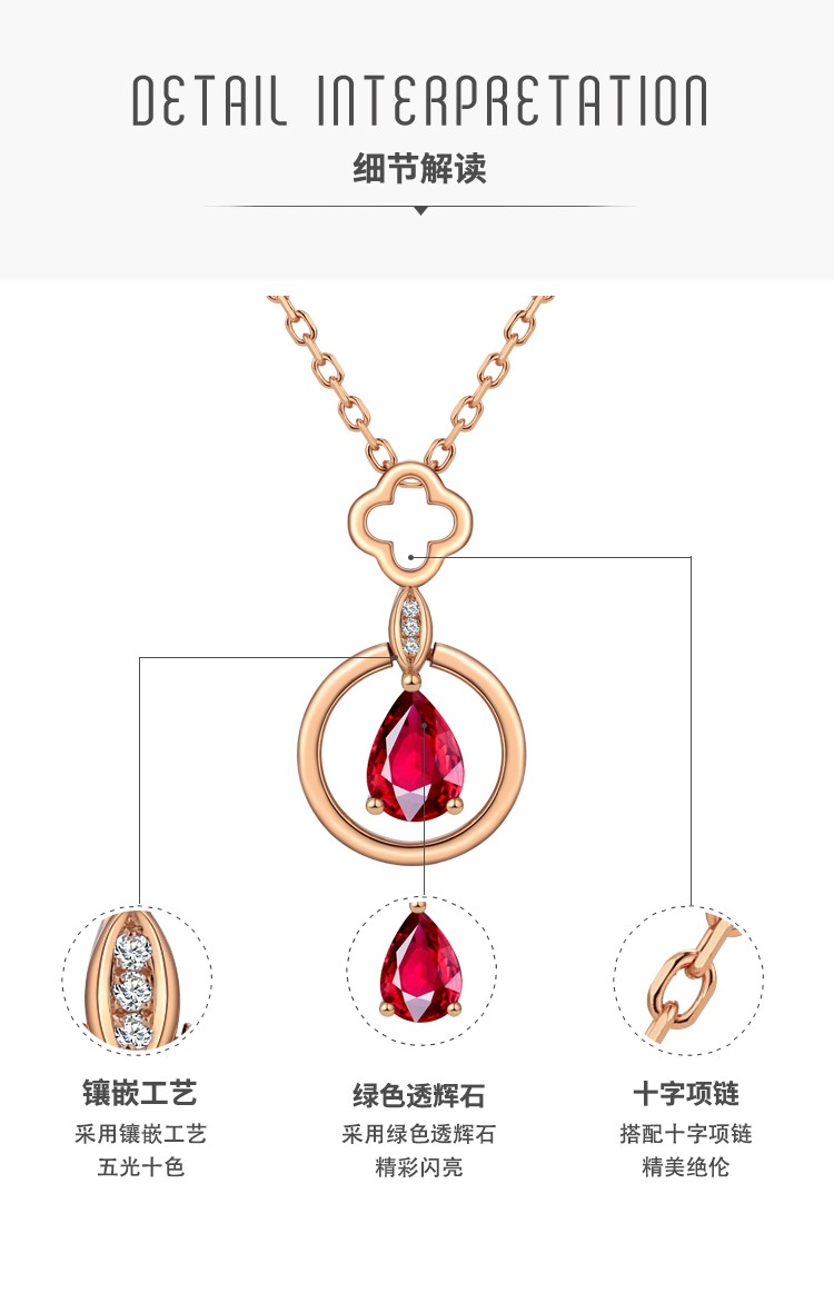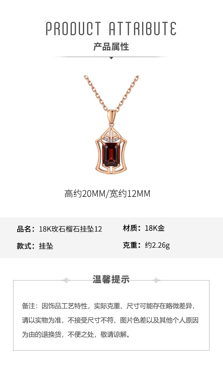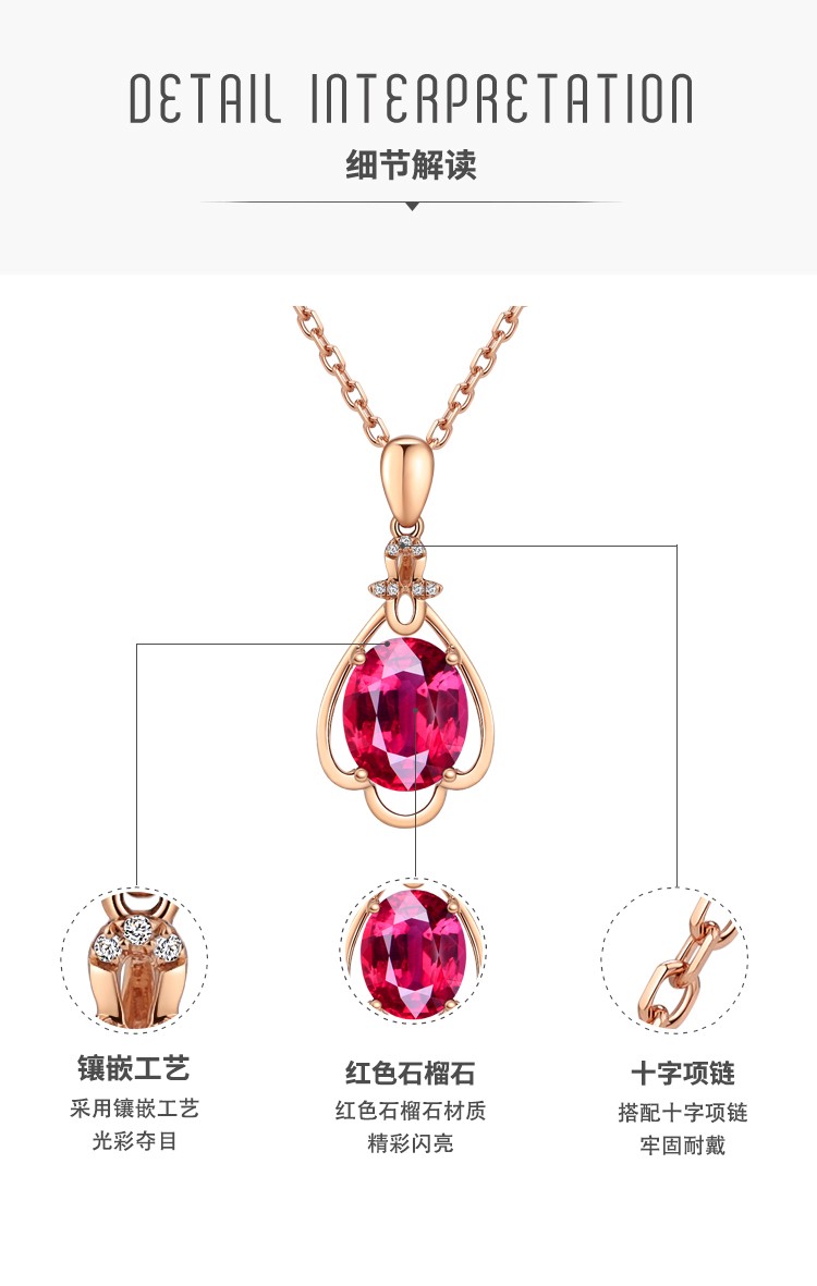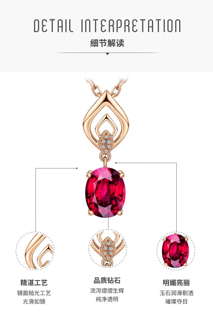 Laomiao 18k gold necklace garnet pendant women's colorful treasure as a Chinese Valentine's Day gift for girlfriend and mother (not including necklace) total weight about 1.25g