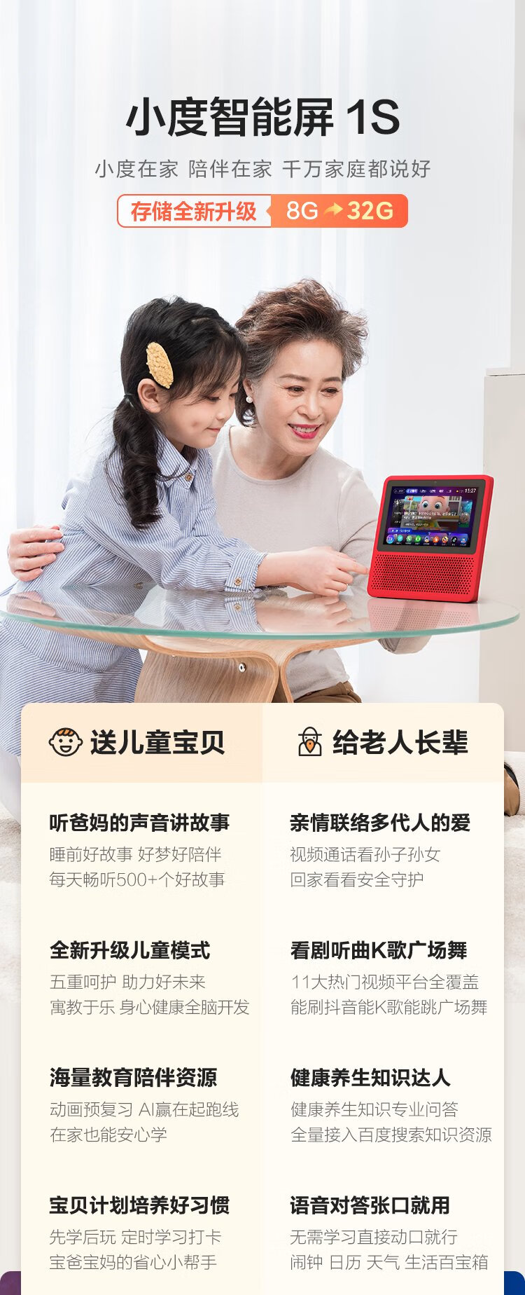 Xiaodu Smart Screen 1S 1S PLUS Wenxin Large Model Empowerment Smart Speaker Audio 8-inch Large Screen Video Call Valentine's Day Gift Children Learn to Accompany the Elderly Soon to be sold out 1S White