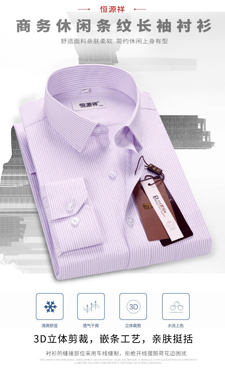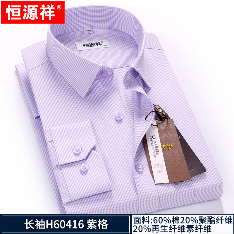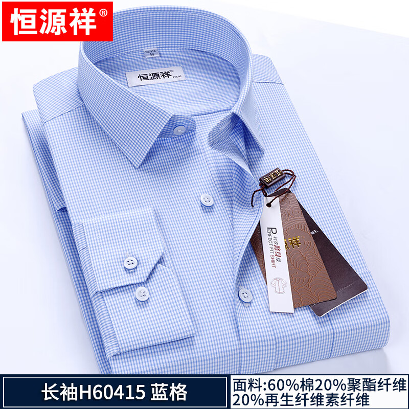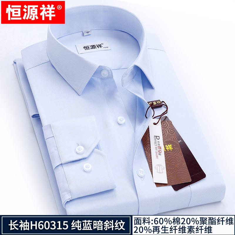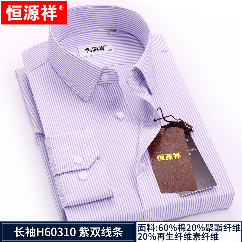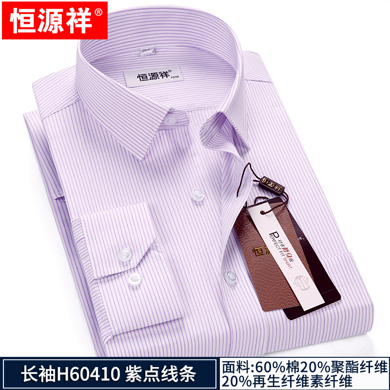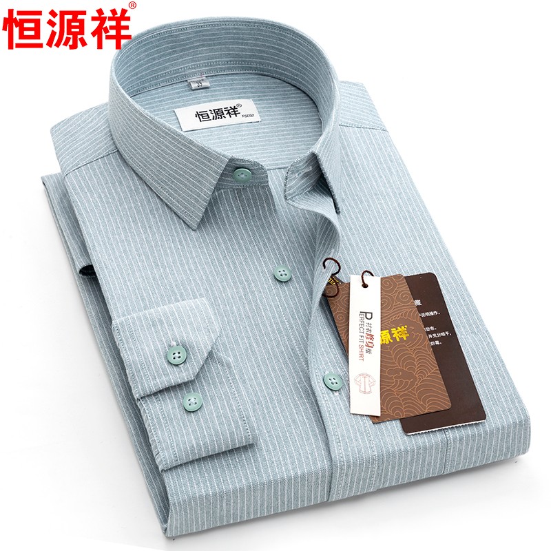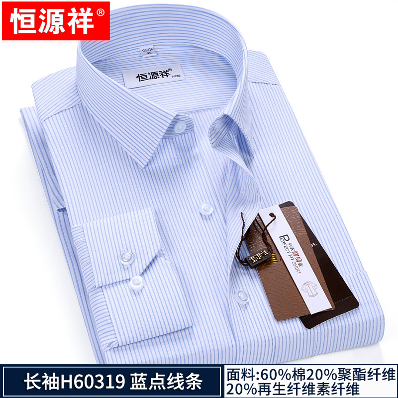 Hengyuanxiang striped shirt men's long-sleeved slim-fit no-iron business casual formal middle-aged shirt spring style long-sleeved H60319 blue dot line 42