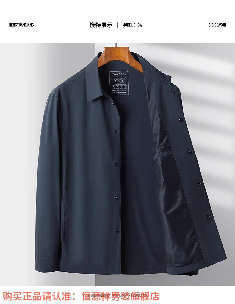 Hengyuanxiang sun protection clothing men's middle-aged summer thin jacket fishing sun protection clothing ice silk outdoor sports clothing men's dark blue L 175