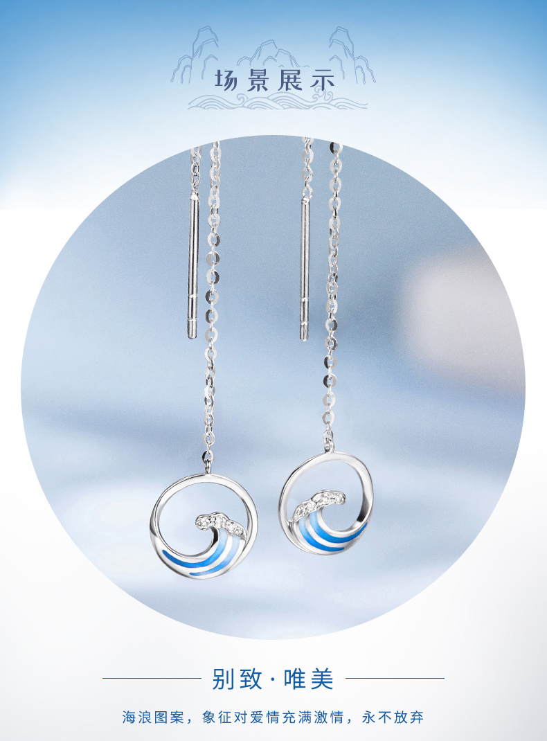 Cai Bai Jewelry K Gold Earrings Eachother Series Blue Wave Earrings White 18K Gold Diamond Earrings ZS Eachother Series-Earrings