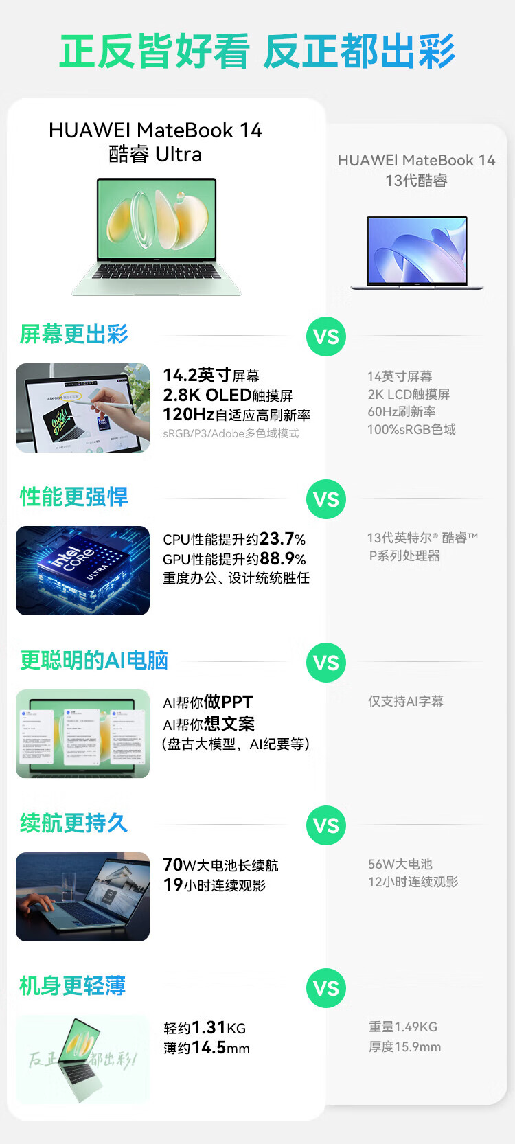 Huawei (HUAWEI) MateBook 14 laptop government subsidy Linux system 2.8K touch screen Ultra 5 /7 business office thin and light notebook Wilderness Green Ultra 5 16G 1TB touch screen Store pre-installed Windows version (key not included)