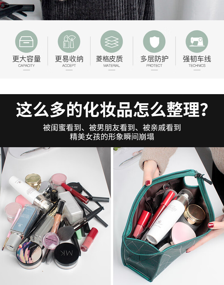 Rui Liya cosmetic bag portable ins style large capacity portable cosmetic bag large capacity travel storage bag wash bag storage bag peacock green large internet celebrity cosmetic bag