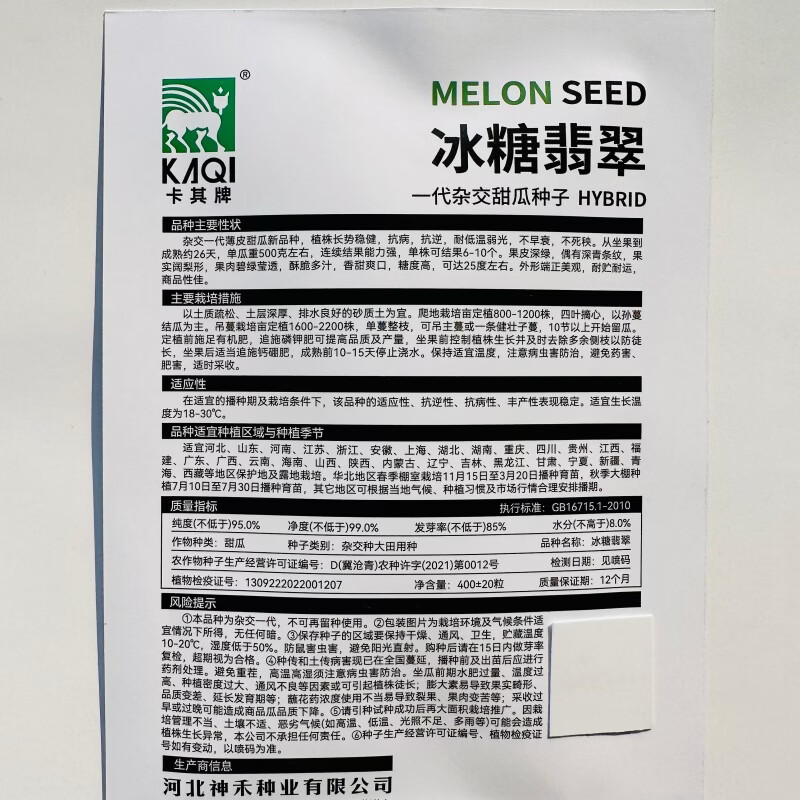 Chunzhi Yun Emerald Ice Jade Super Sweet Sugary 25 Degree Thin Skin Melon Seeds Green Skin Green Flesh Anti-Crack High Yield Melon Seeds Emerald No. 2 Original 5g Approximately 450 Tablets