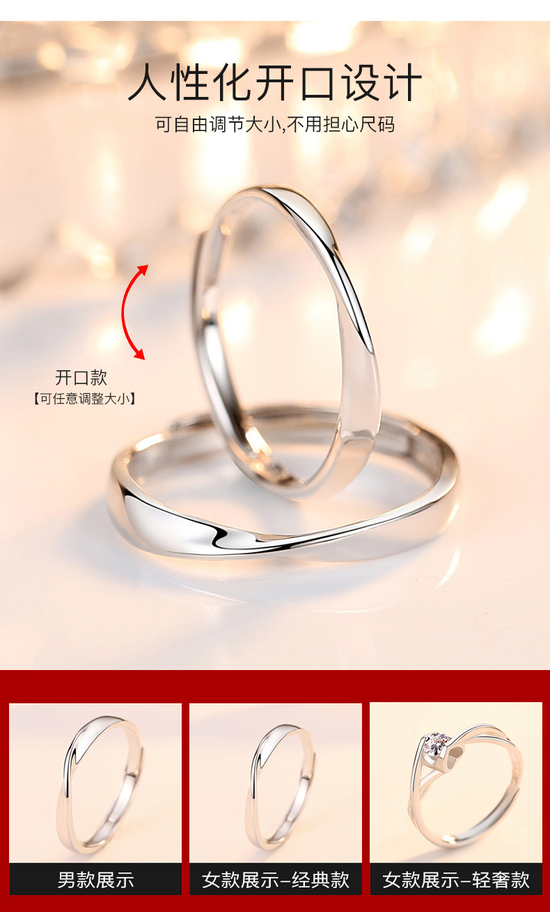 Vangia 925 silver couple ring for men and women, live mouth pair, Möbius closed mouth ring, birthday and Valentine's Day gift, live mouth/closed mouth pair - free engraving