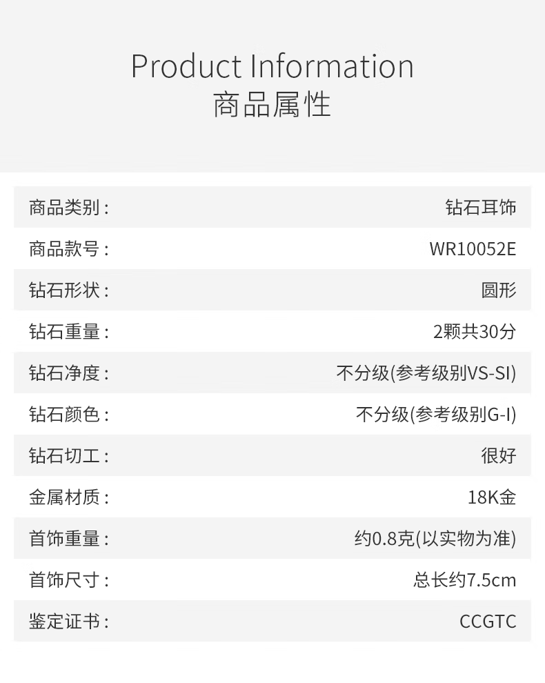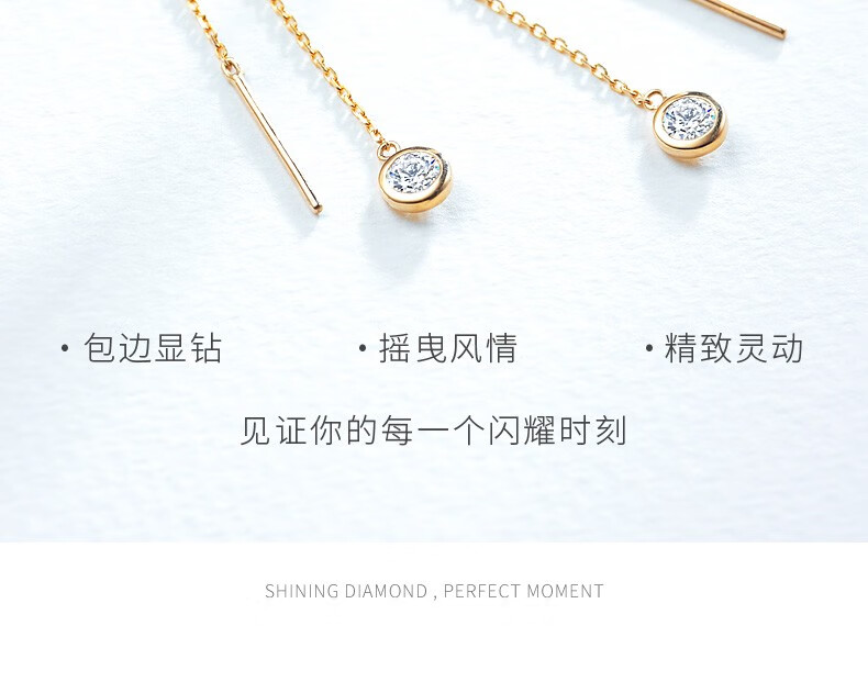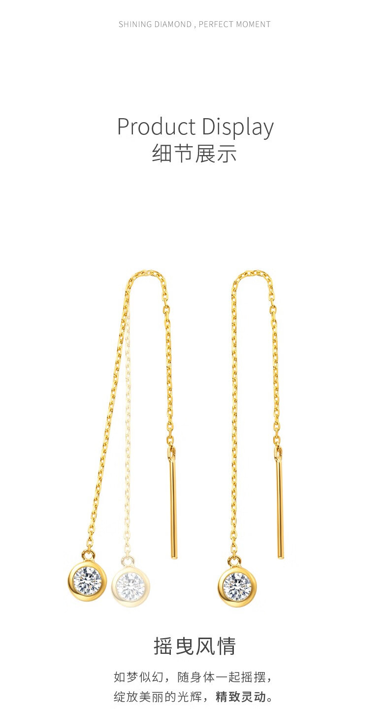 WithLove 18K yellow gold personalized earrings, 30 points diamond earrings, real diamond women's earrings, 30 points in total, 18K yellow gold/customized