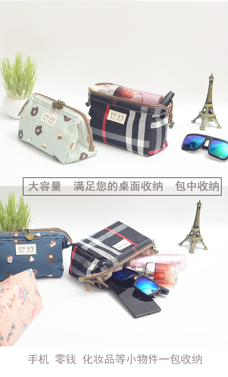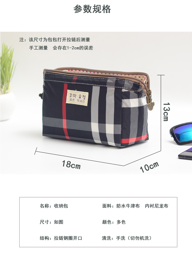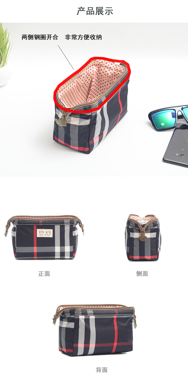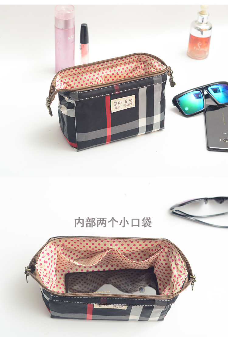 Yu Fengyue cosmetic bag small portable waterproof belongings storage bag bag Internet celebrity ins new large capacity female trend black plaid
