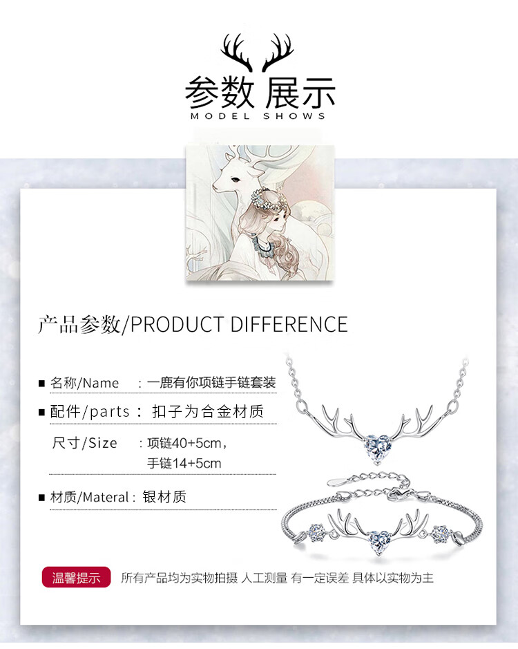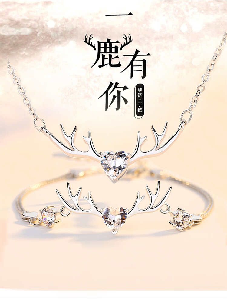 Jianlu Yulu You You Silver Necklace Women's Light Luxury High-end Pendant Bracelet Birthday Chinese Valentine's Day Gift for Girlfriend All the Way You Have Silver Necklace Bracelet Set-Certificate