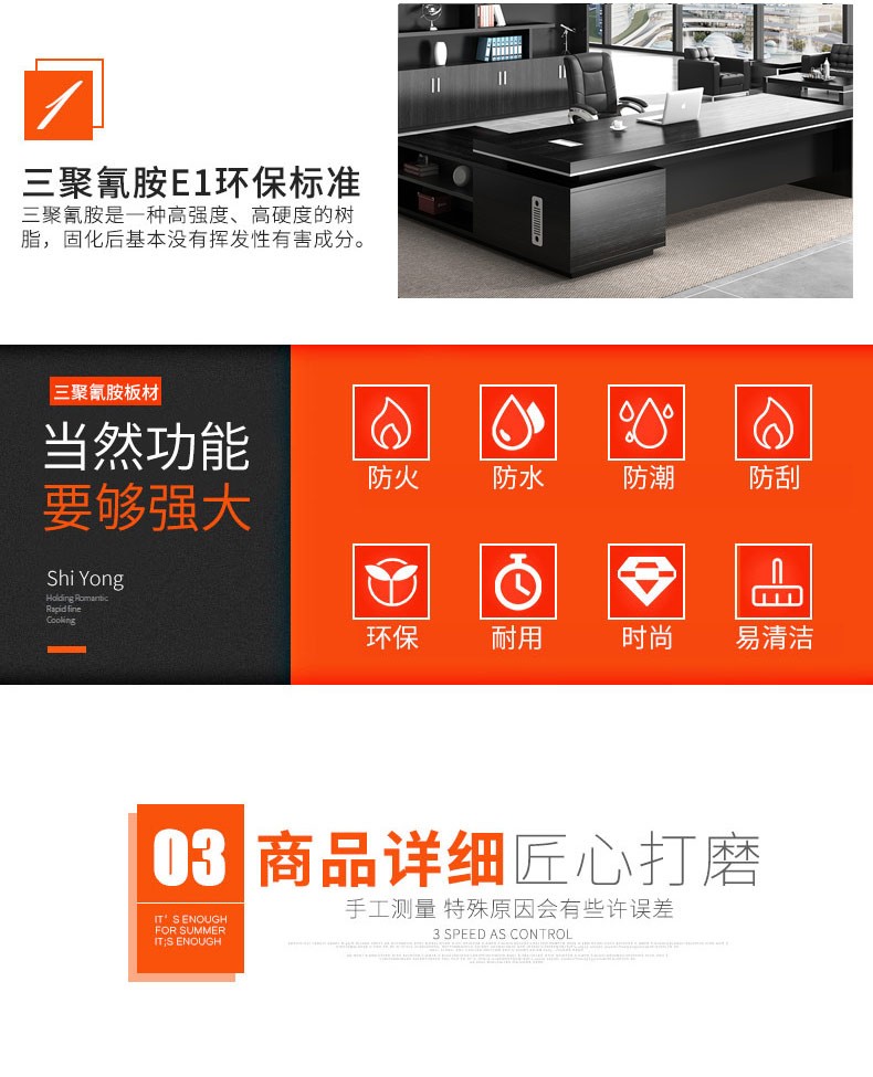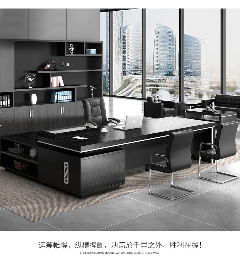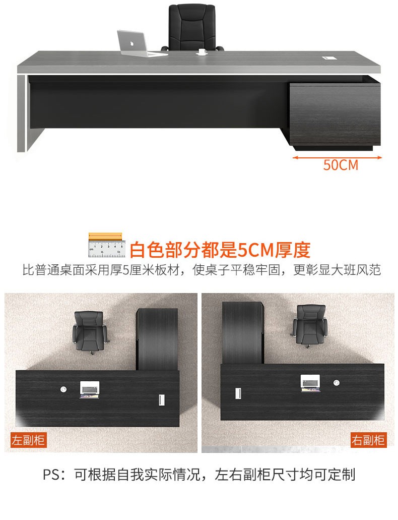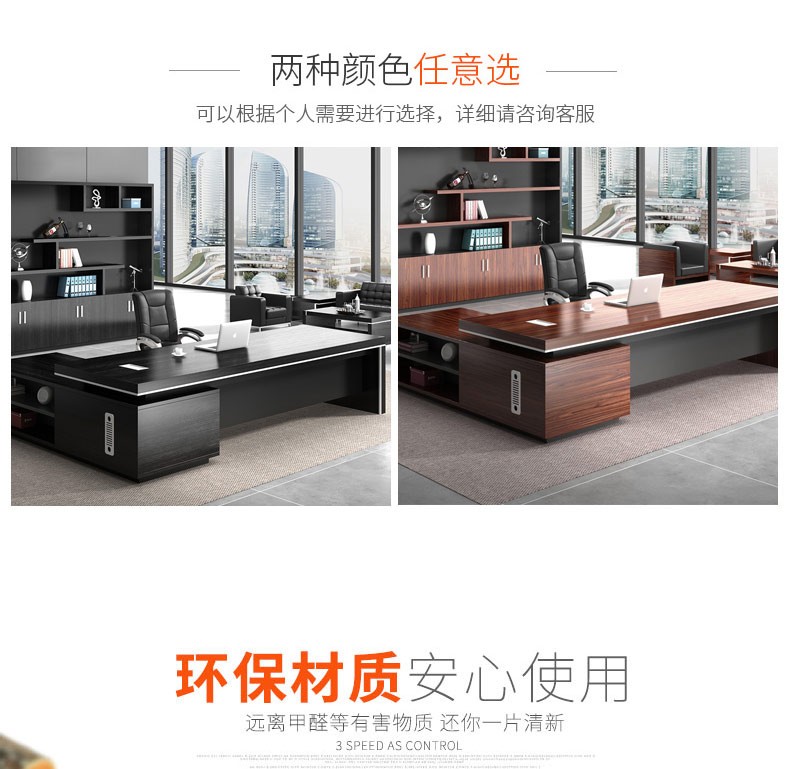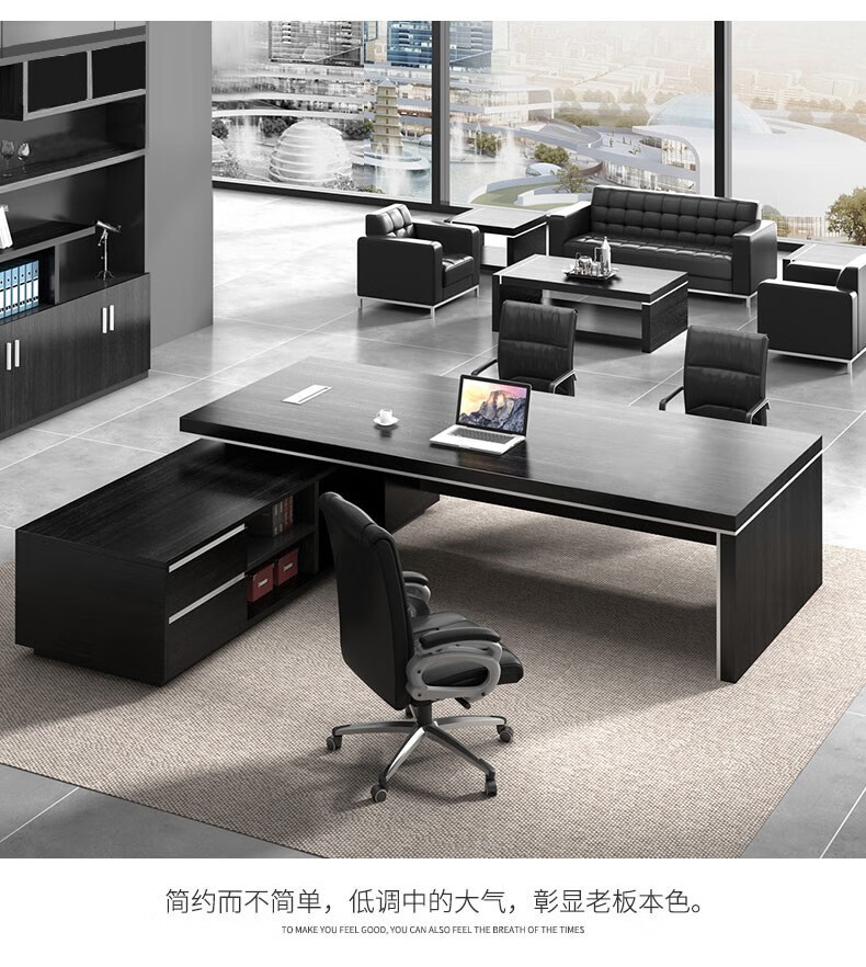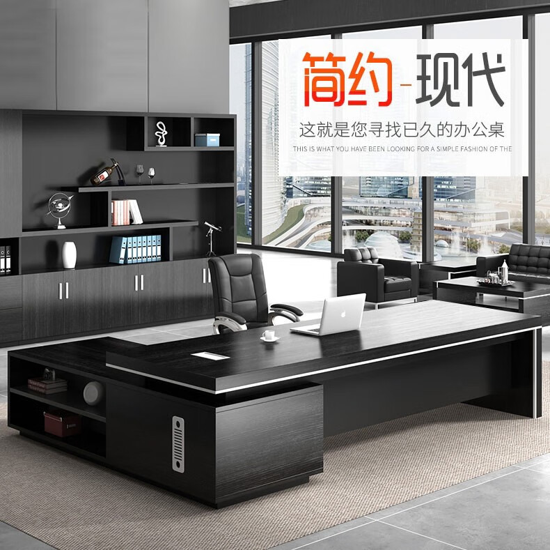 Mu Zhexi Boss Desk Desk President Desk Manager Desk Boss Desk and Chair Combination Manager Room Modern Simple Teak Color Left Side Cabinet 1.6 Meter Boss Desk
